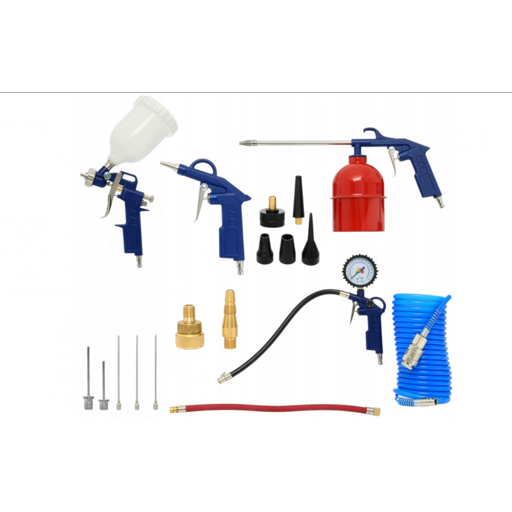 ✔️ Šis 18 daļu pneimatiskais komplekts ir ideāls risinājums ikvienam , kam nepieciešams uzticams aprīkojums krāsošanai, tīrīšanai, sūknēšanai un grūti sasniedzamu vietu izpūšanai.