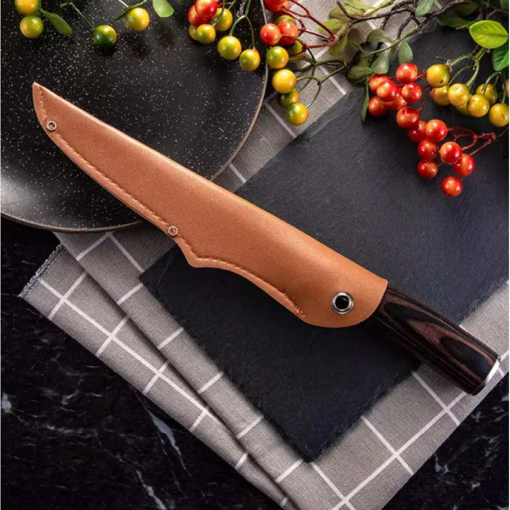 Ergonomiskais rokturis ar koka oderi ir ārkārtīgi ērts, tāpēc medību nazis lieliski ieguļ rokā .