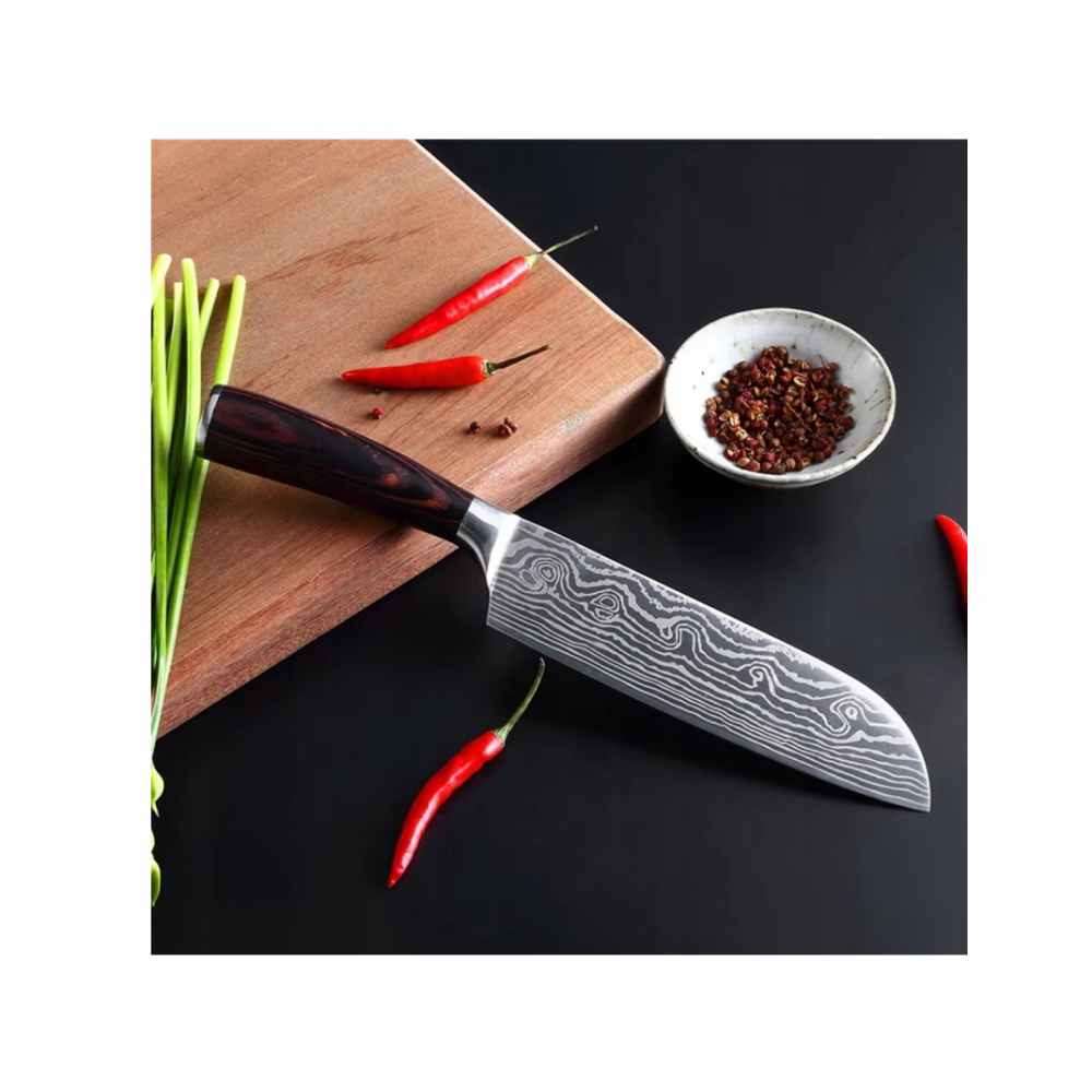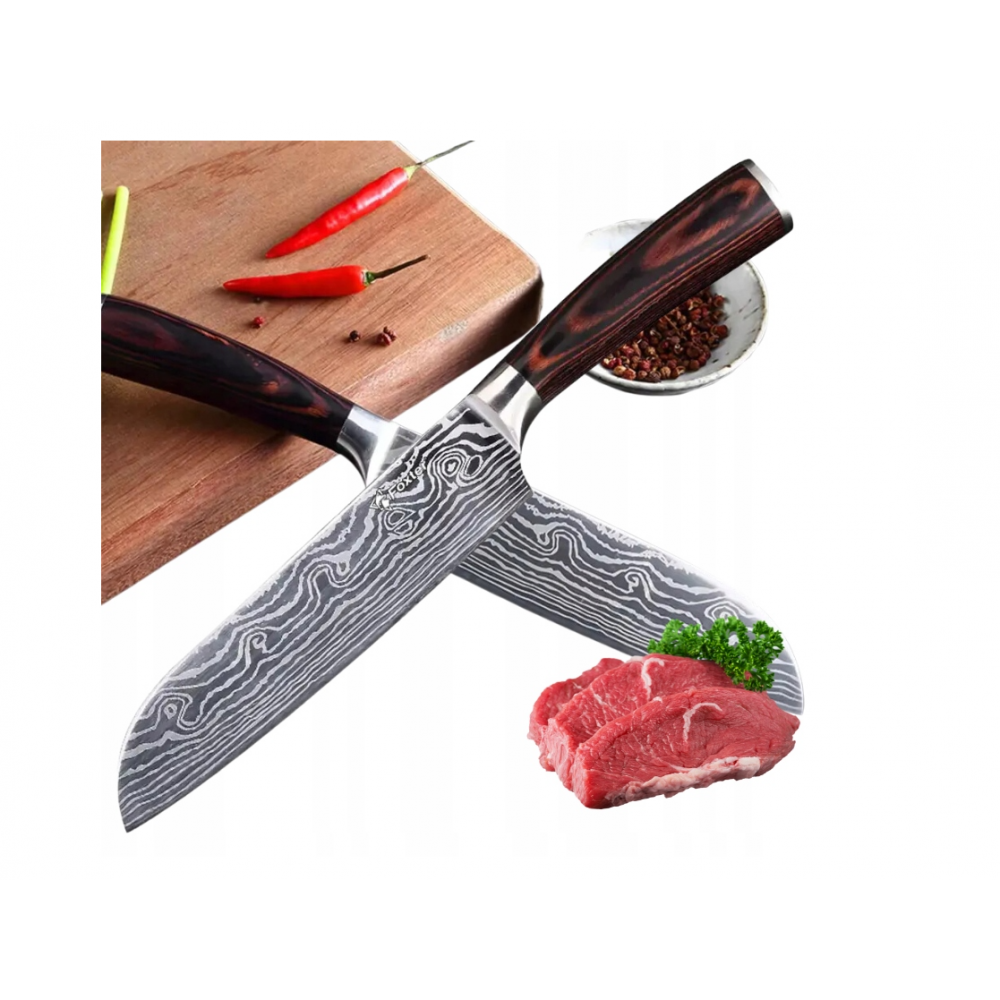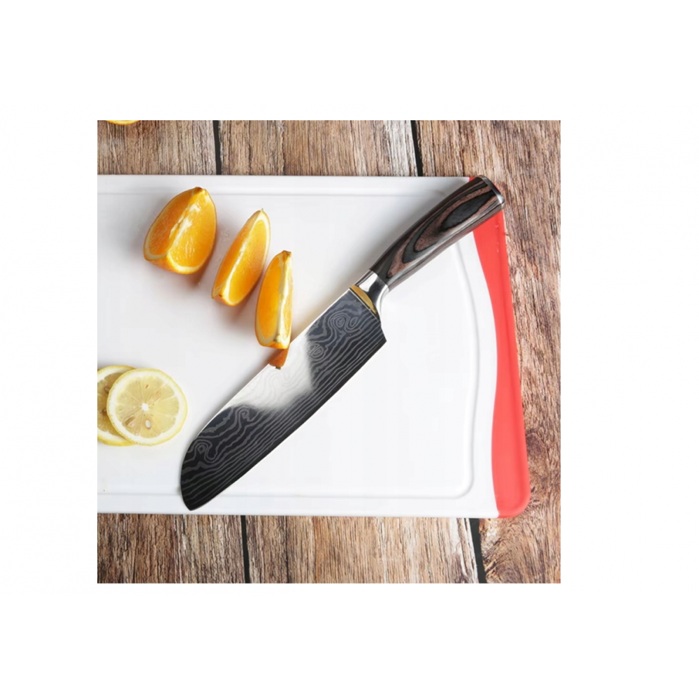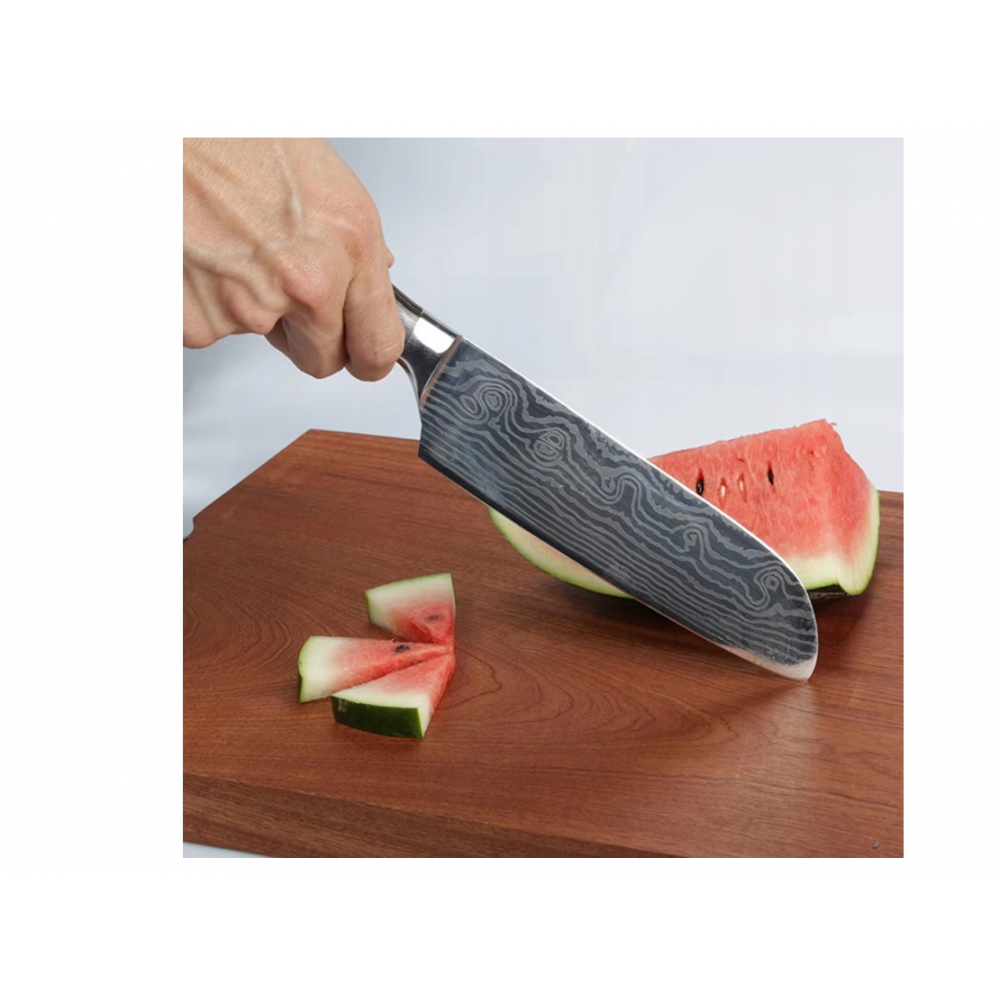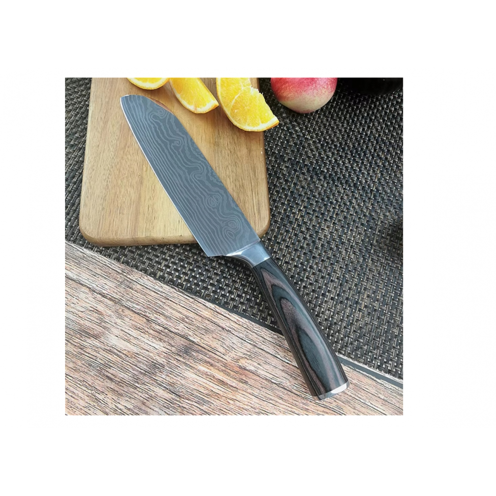 Roktura forma nodrošina stingru satvērienu un drošību . Šis virtuves nazis ir piemērots dārzeņu, augļu, gaļas un citu produktu griešanai.