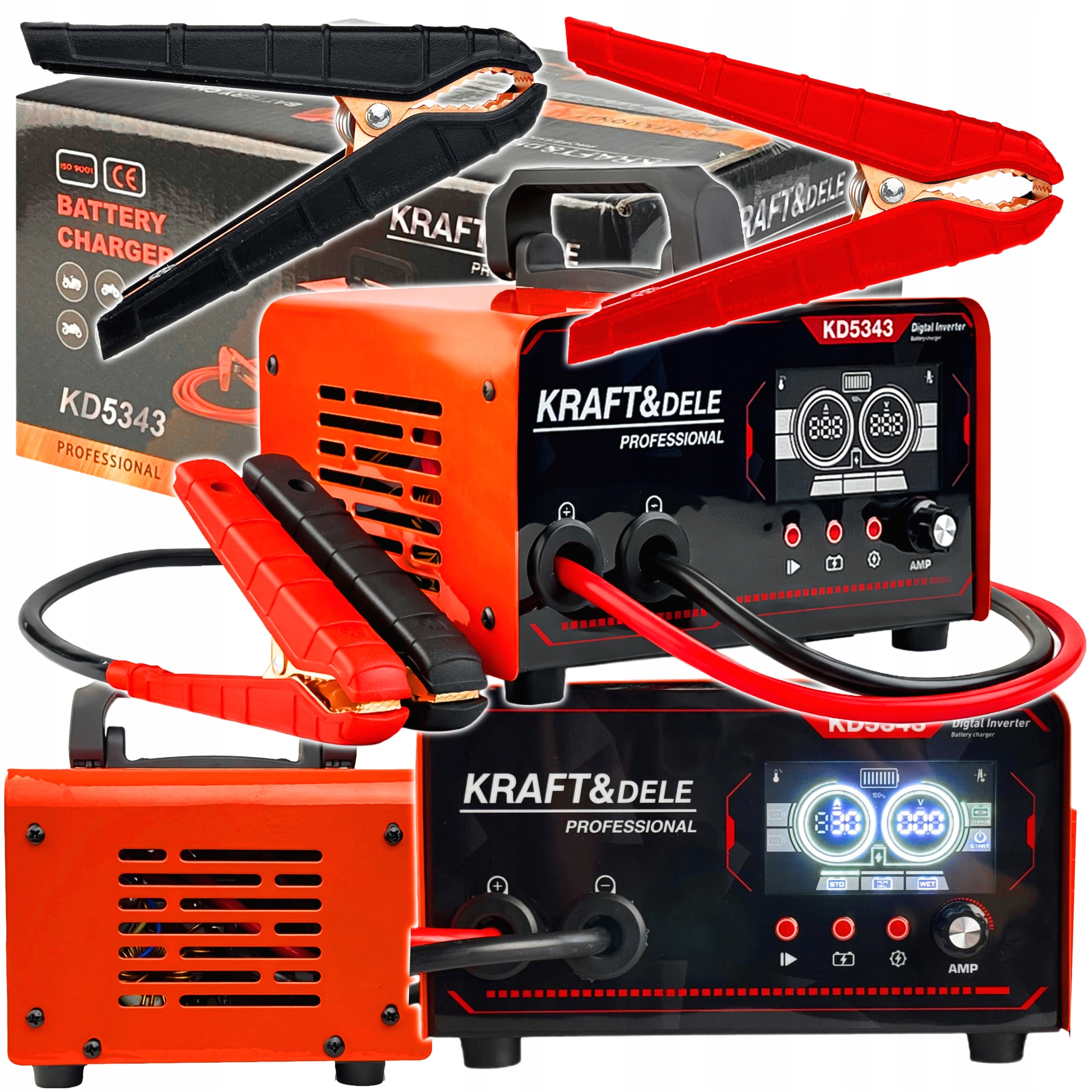 KD5343 modelis ir aprīkots ar digitālo displeju, kas parāda akumulatora spriegumu un ļauj nepārtraukti uzraudzīt uzlādes procesu. Lādētājs automātiski samazina strāvas stiprumu, kad akumulators ir pilnībā uzlādēts, tādējādi atvieglojot tā vadību un palielinot lietotāja komfortu. Turklāt palaišanas funkcija nodrošina iedarbināšanas palīdzību, un plašas drošības funkcijas aizsargā ierīci un akumulatoru dažādās darbības situācijās.