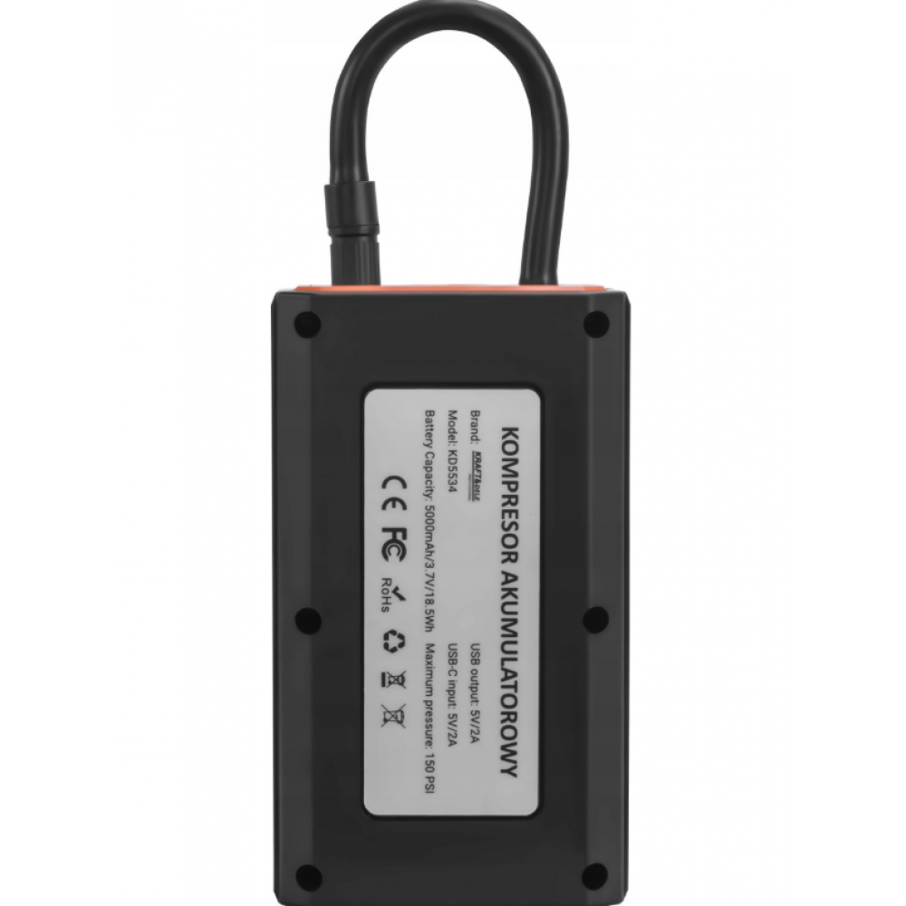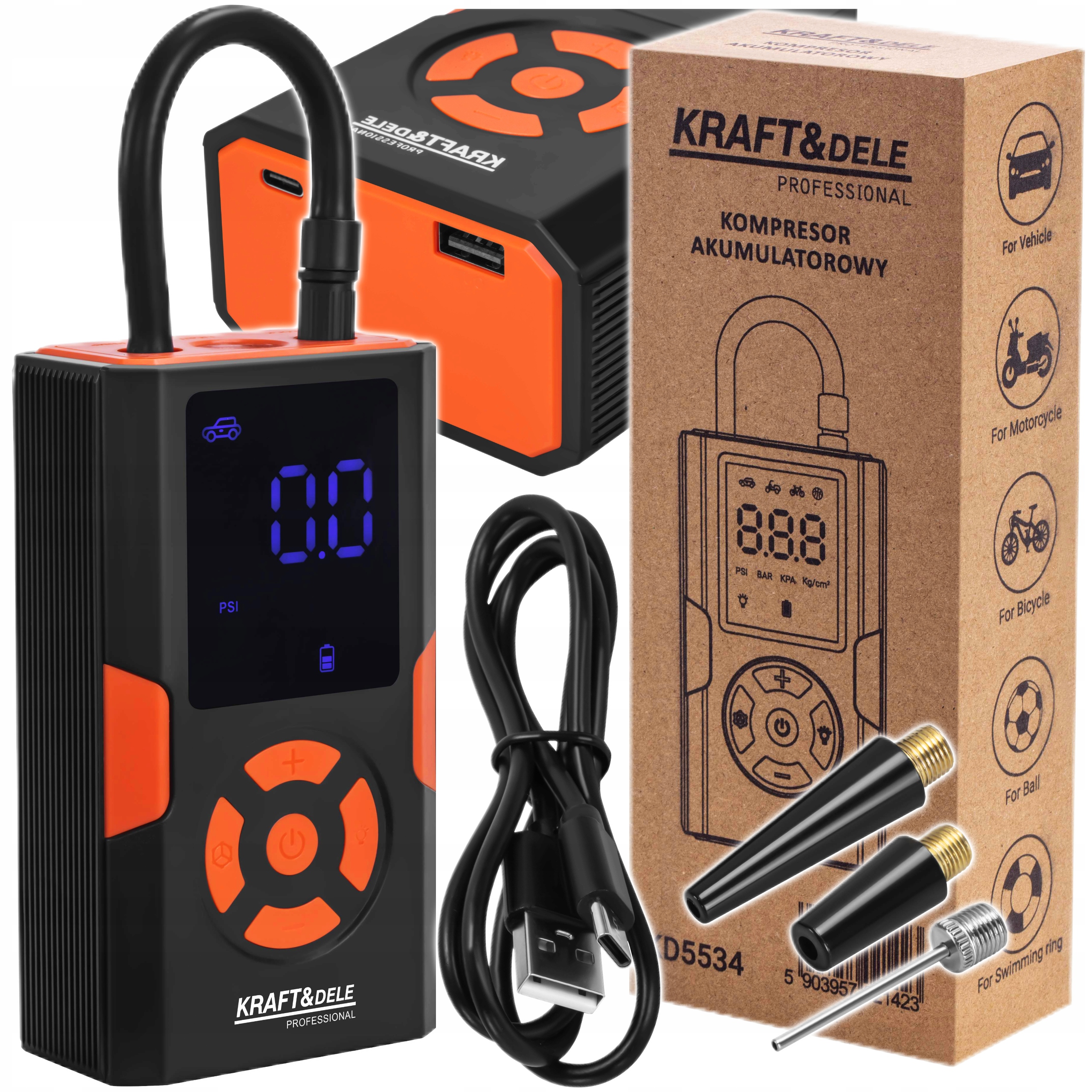 KD5534 ir moderns bezvadu kompresors no KRAFT&DELE, kas apvieno kompaktu dizainu ar augstu funkcionalitāti. Tas ir ideāli piemērots automašīnu riepu, motociklu un velosipēdu, kā arī dažādu piederumu, piemēram, bumbu un gaisa matraču, piepūšanai. Pateicoties kompaktajam izmēram un iebūvētajam rokturim, kas kalpo arī kā gaisa šļūtene, kompresors ir ārkārtīgi ērts un gatavs lietošanai jebkurā laikā.