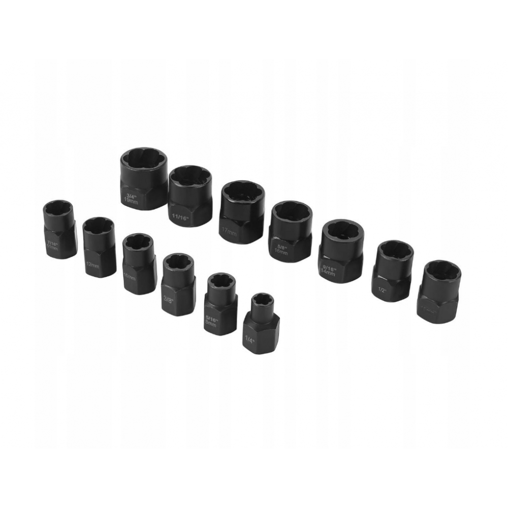 ⚙️ Izvilcēji: 1/4", 8 mm, 3/8", 10 mm, 11 mm, 12 mm, 1/2", 13 mm, 14 mm, 16 mm, 17 mm, 11/16", 19 mm