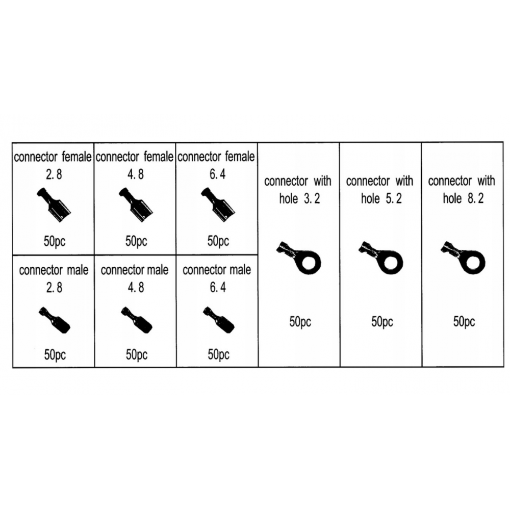 - vīriešu savienotāji 2,8 mm 50 gab.