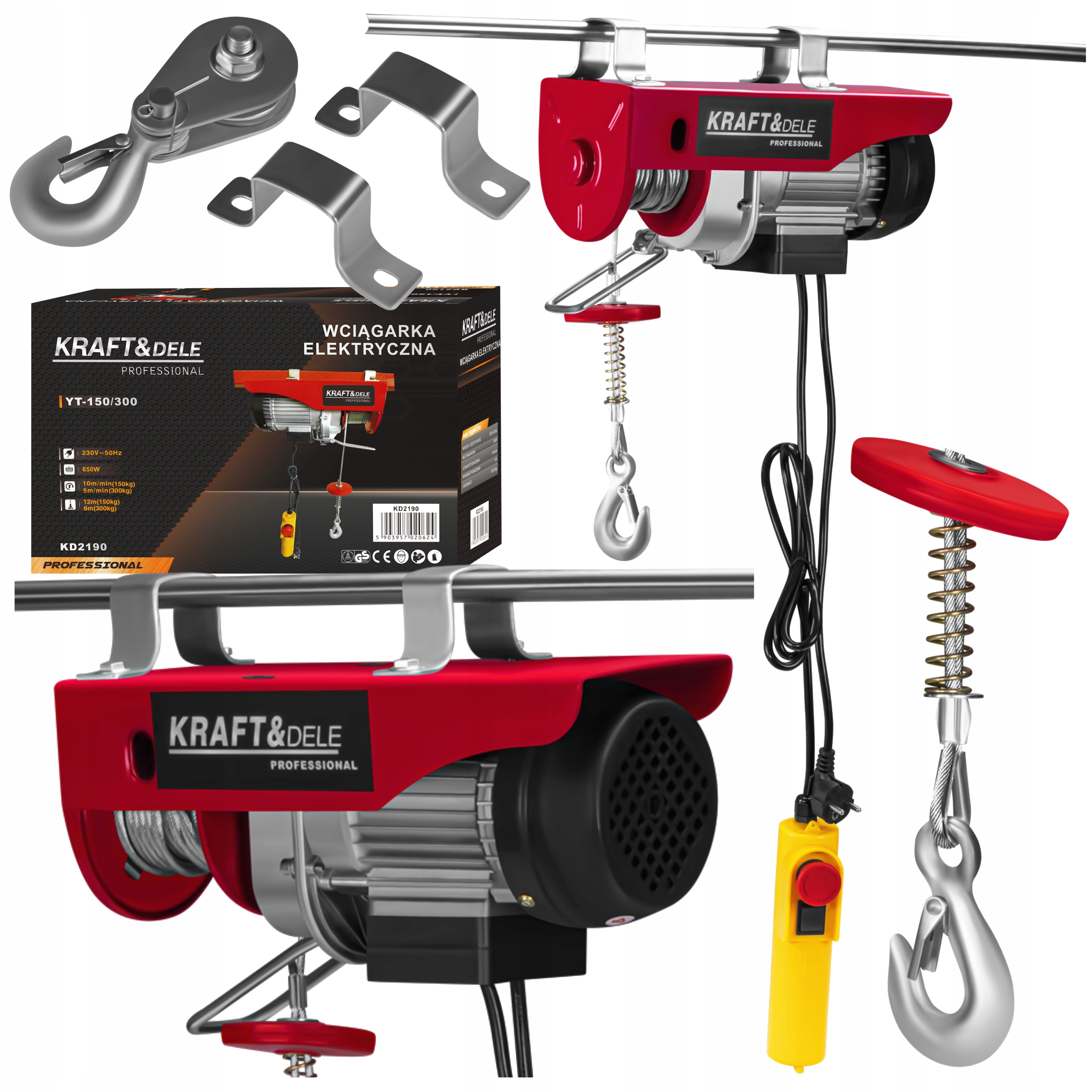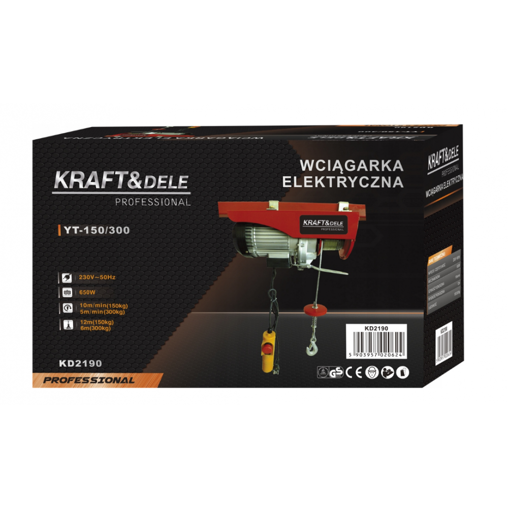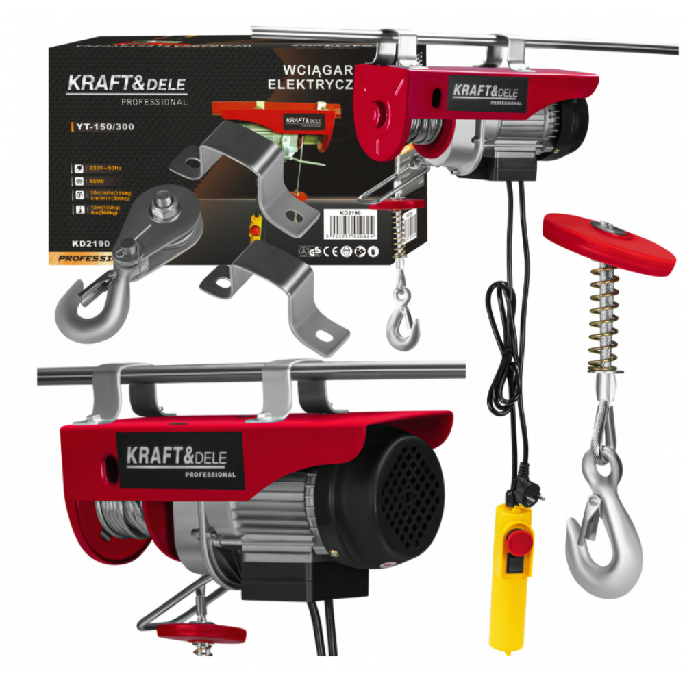 KD2190 ir izturīga un efektīva KRAFT&DELE elektriskā vinča, kas paredzēta smagu priekšmetu drošai pacelšanai un nolaišanai. Tā ir ideāli piemērota darbnīcām, garāžām, būvlaukumiem un pat montāžas un apkopes darbiem.