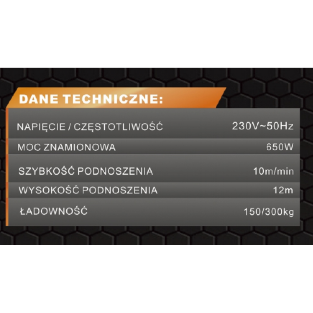 Elektriskā vinča 230V 650W 150/300kg KD2190