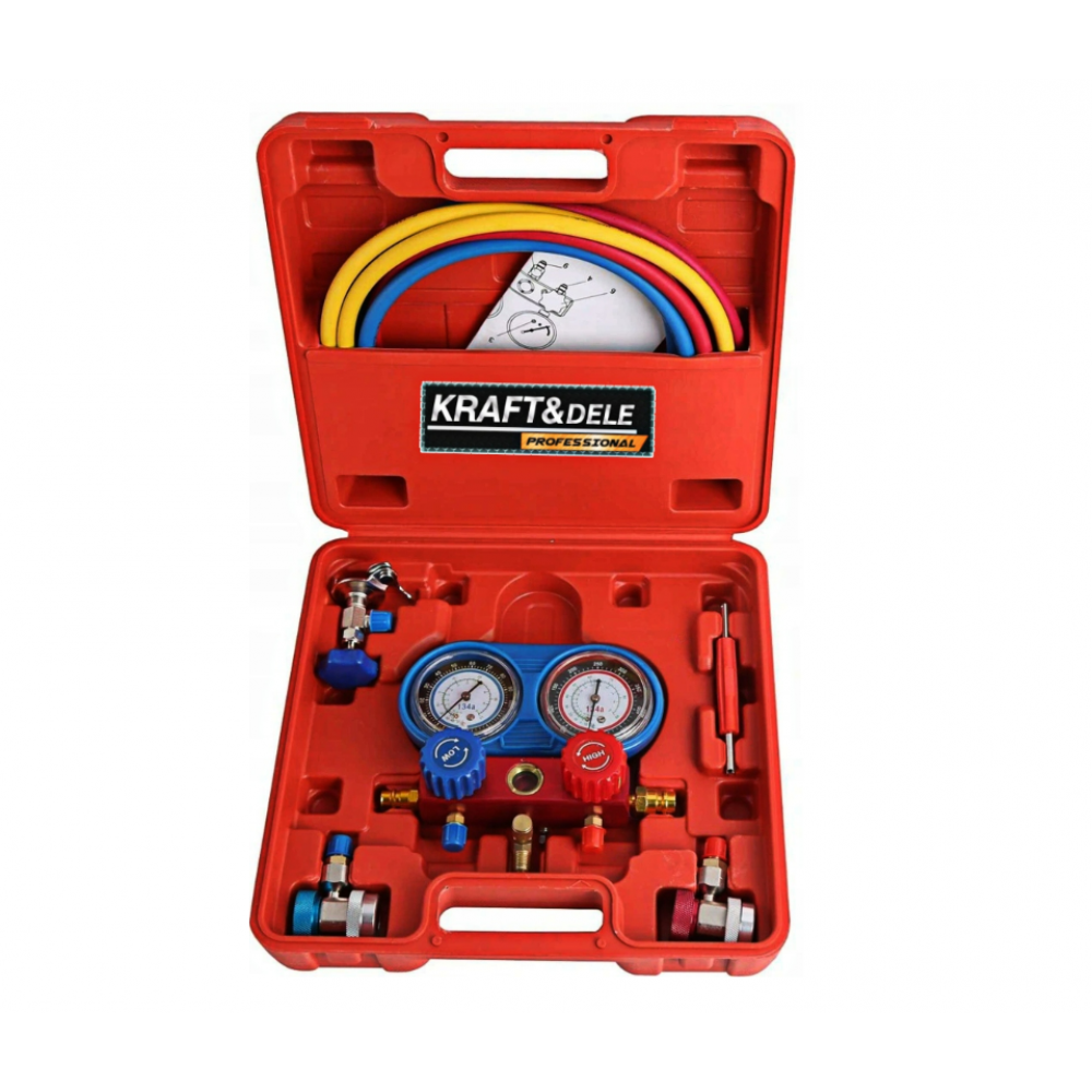 - Divi manometri ar skalām R22 , R134 , R12 aukstumaģentiem