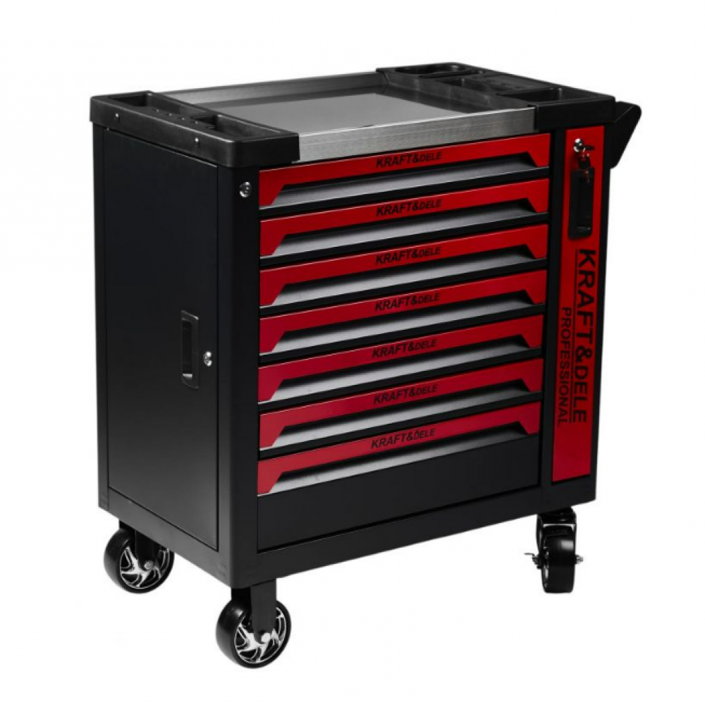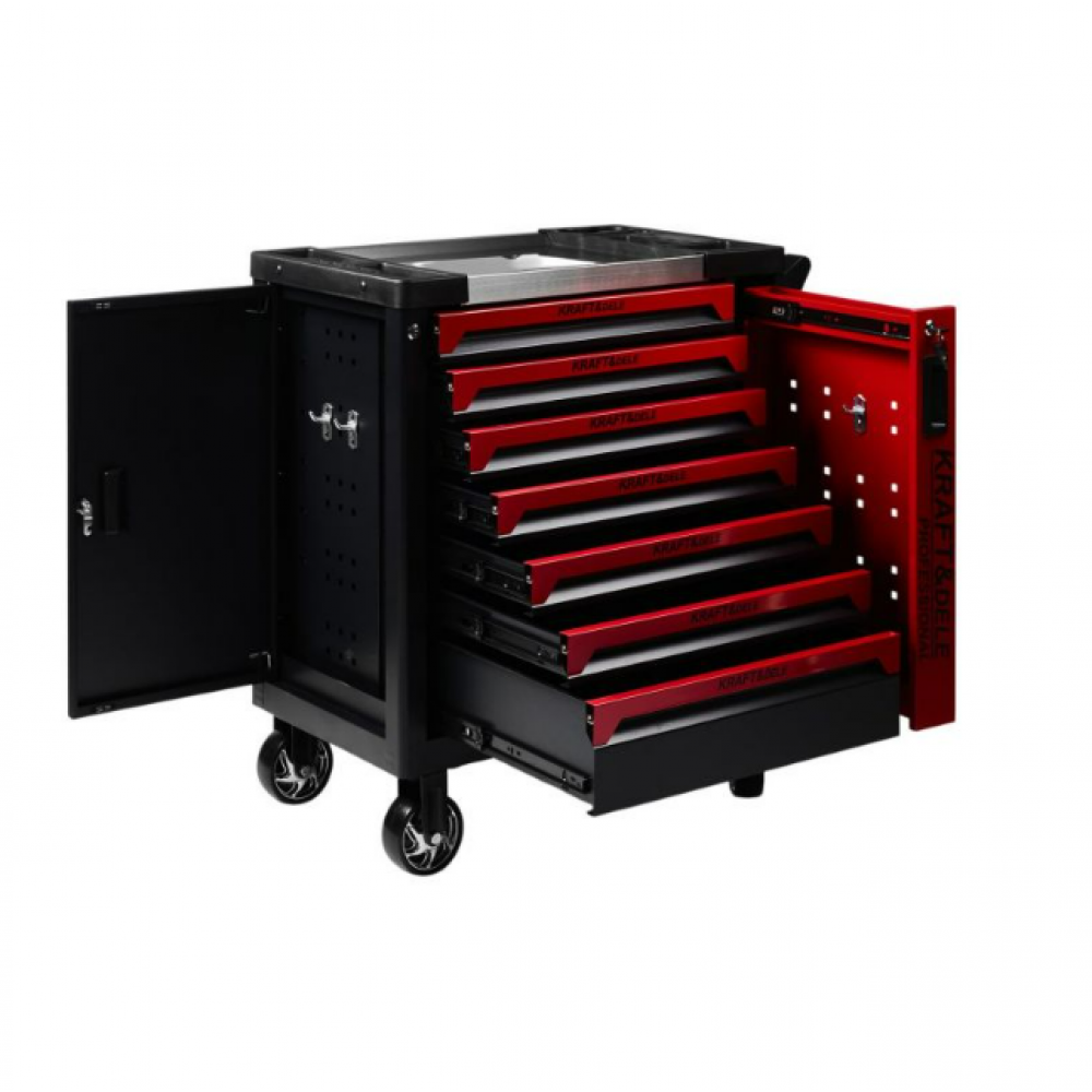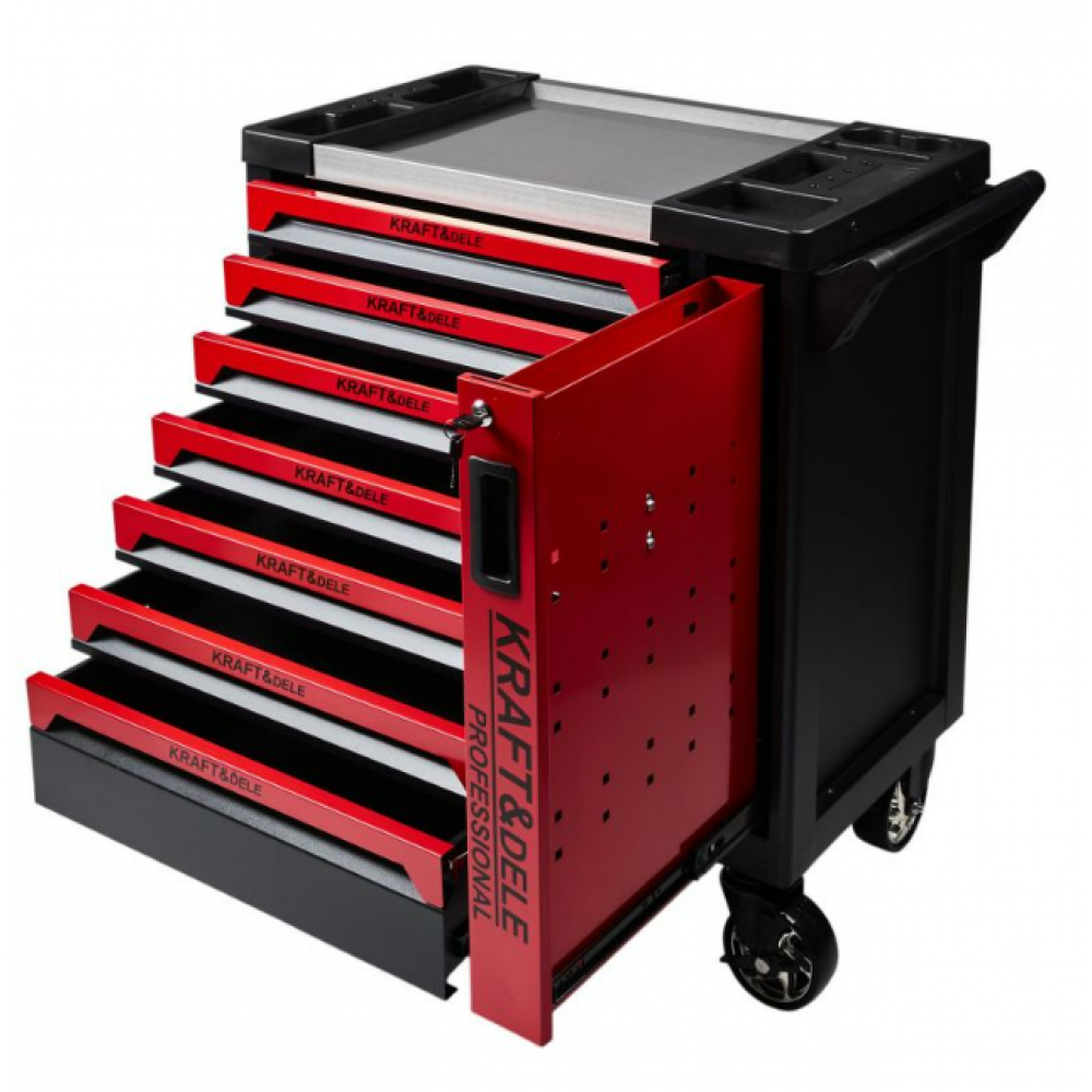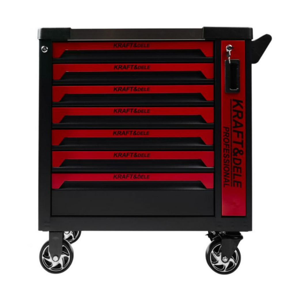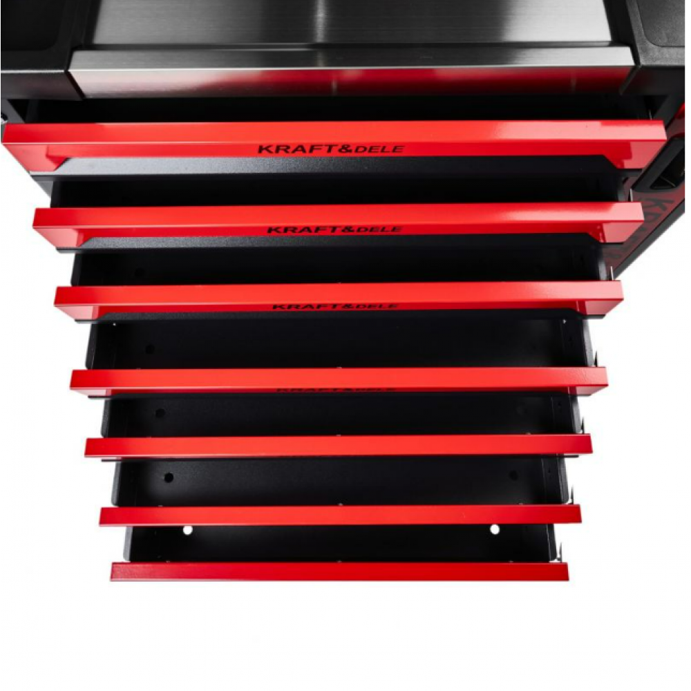 Kraft & Dele instrumentu skapis KD1078 ir ideāls risinājums tiem, kas vēlas ieviest kārtību un organizētību savā darbnīcā vai garāžā. Tas piedāvā funkcionalitāti, kas ievērojami uzlabo darba komfortu un darba vietas organizācijas efektivitāti. Aprīkots ar deviņām ietilpīgām atvilktnēm, skapis nodrošina optimālu telpas izmantošanu, un, pateicoties lodīšu gultņu vadotnēm, atvilktņu atvēršana ir ārkārtīgi vienkārša un vienmērīga. Turklāt katra atvilktne ir aprīkota ar bloķēšanas mehānismu, kas nodrošina stabilitāti lietošanas laikā.