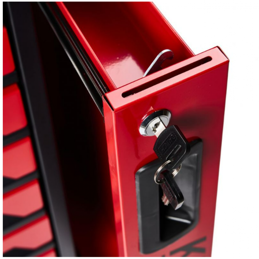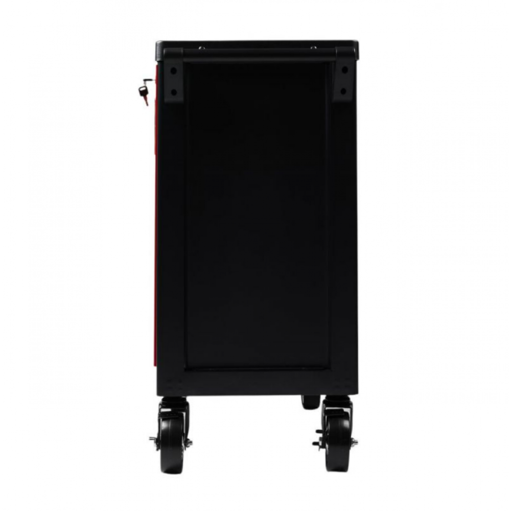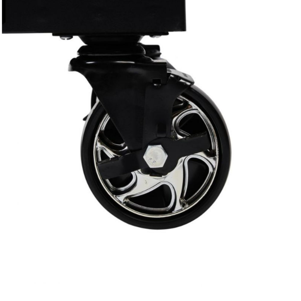 Skapja mobilitāti uzlabo divi grozāmi ritentiņi ar automātisku bloķēšanu un bremzi, nodrošinot drošu pārvietošanos pat uz nelieliem slīpumiem. Darba virsma, kas izgatavota no izturīga tērauda, ir izturīga pret ķīmiskām vielām, augstām temperatūrām un mehāniskiem bojājumiem, uzlabojot tās funkcionalitāti ikdienas lietošanā. Darba virsmas sānos ir caurumi skrūvēm, bultskrūvēm un krūzīšu turētājam, padarot darbu vēl ērtāku un patīkamāku. KD1078 instrumentu skapis ir neaizstājams aprīkojums jebkurai darbnīcai, kas noteikti atvieglos visus remonta un apkopes darbus.