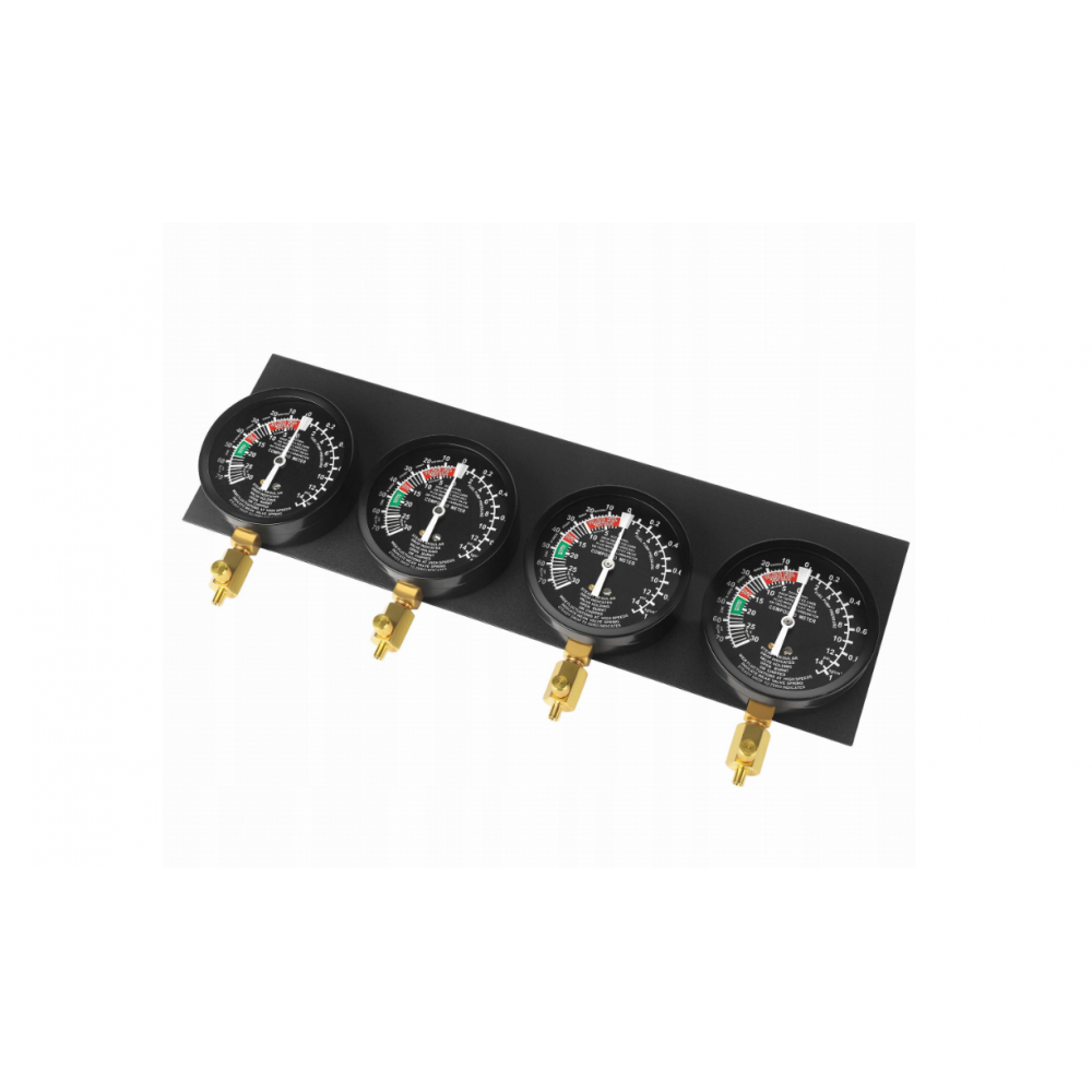 - Izmantojiet četrus spiediena mērītājus , kas ļauj vienlaikus izmērīt vakuuma spiedienu visos karburatoros.