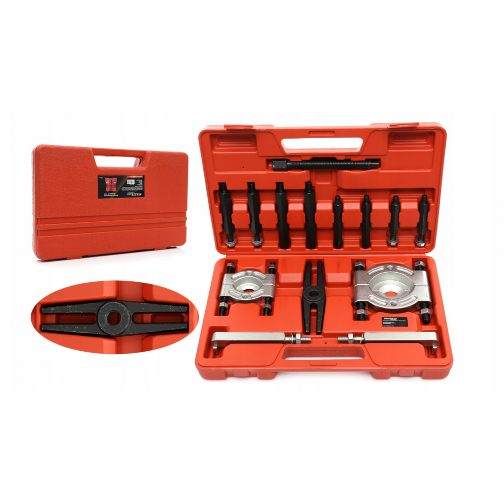 Gultņu, zobratu, bremžu disku, siksnu piedziņu un citu mehānikā izmantojamo iestrēgušo detaļu novilcēju/atdalītāju komplekts.