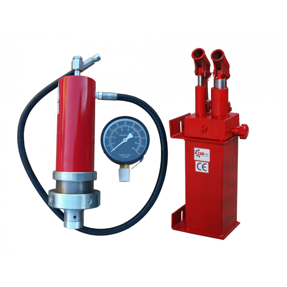 Komplekts sasniedz spiedienu līdz 30 tonnām, ko precīzi kontrolē manometrs.
