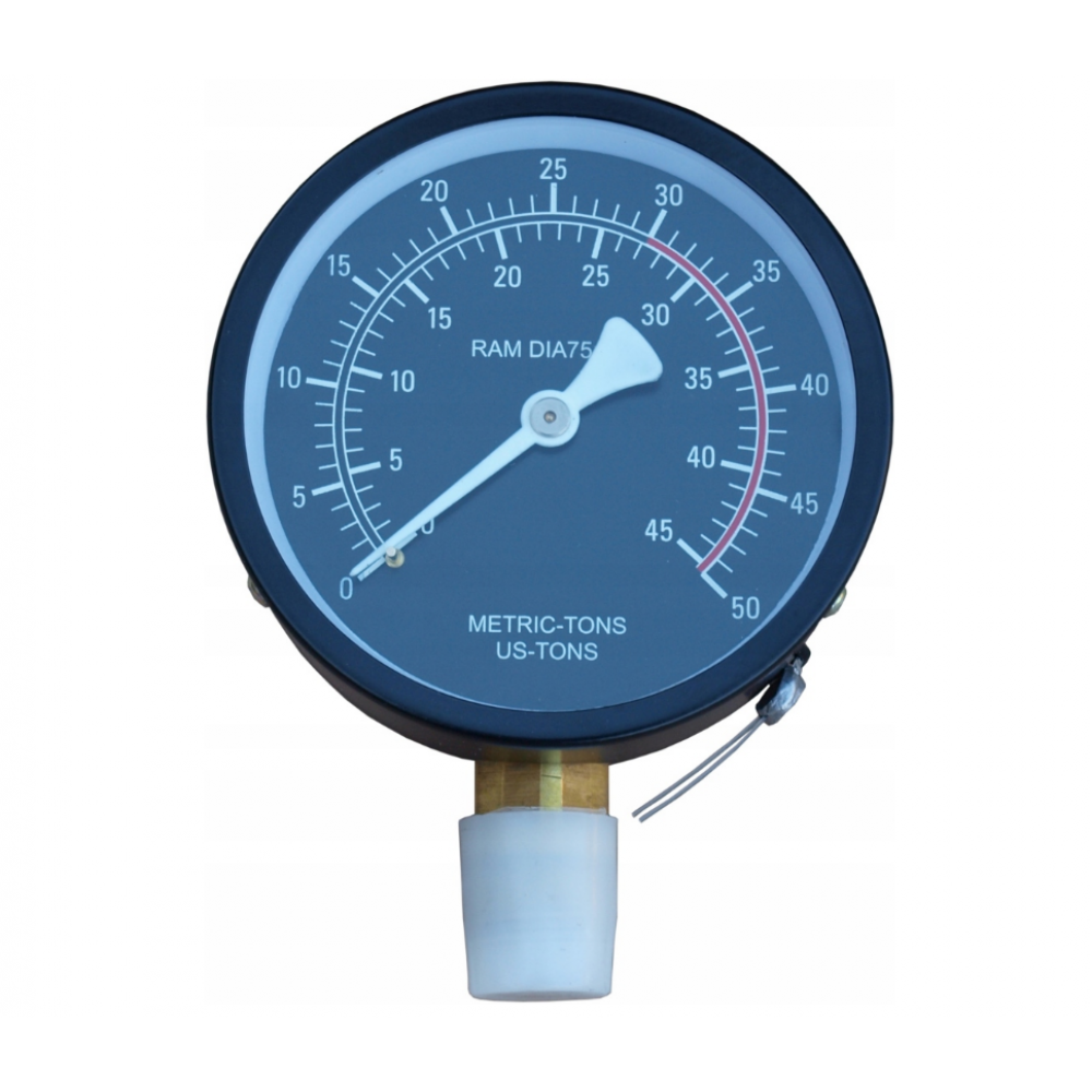 Precīzs spiediena mērītājs ar graduējumu tonnās.