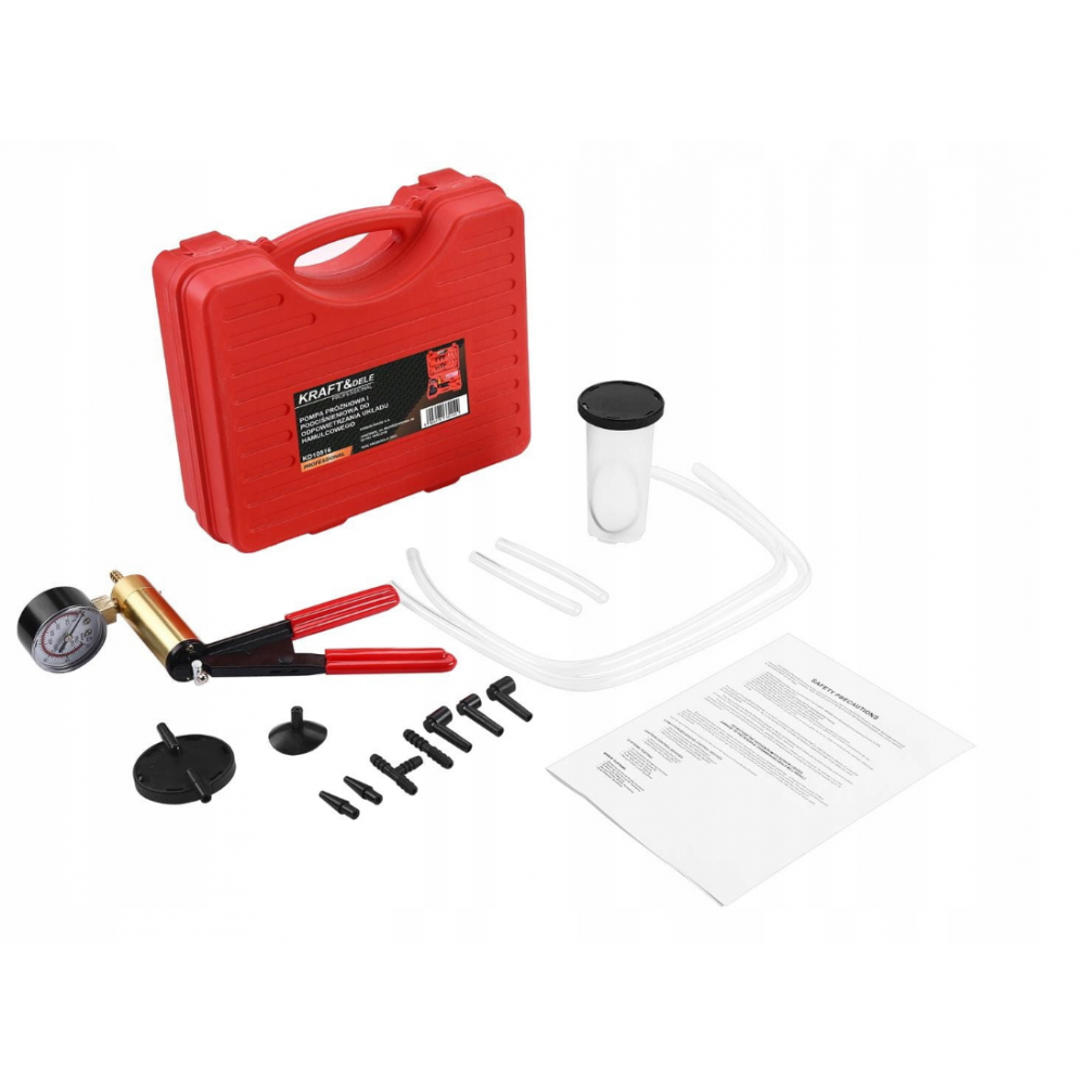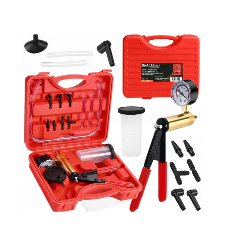 Šis komplekts ļauj pārbaudīt automašīnu hidrauliskās sastāvdaļas. To var izmantot hidraulisko sistēmu atgaisošanai vai šķidrumu sifonēšanai. Tas ir aprīkots ar integrētu vakuuma spiediena mērītāju.