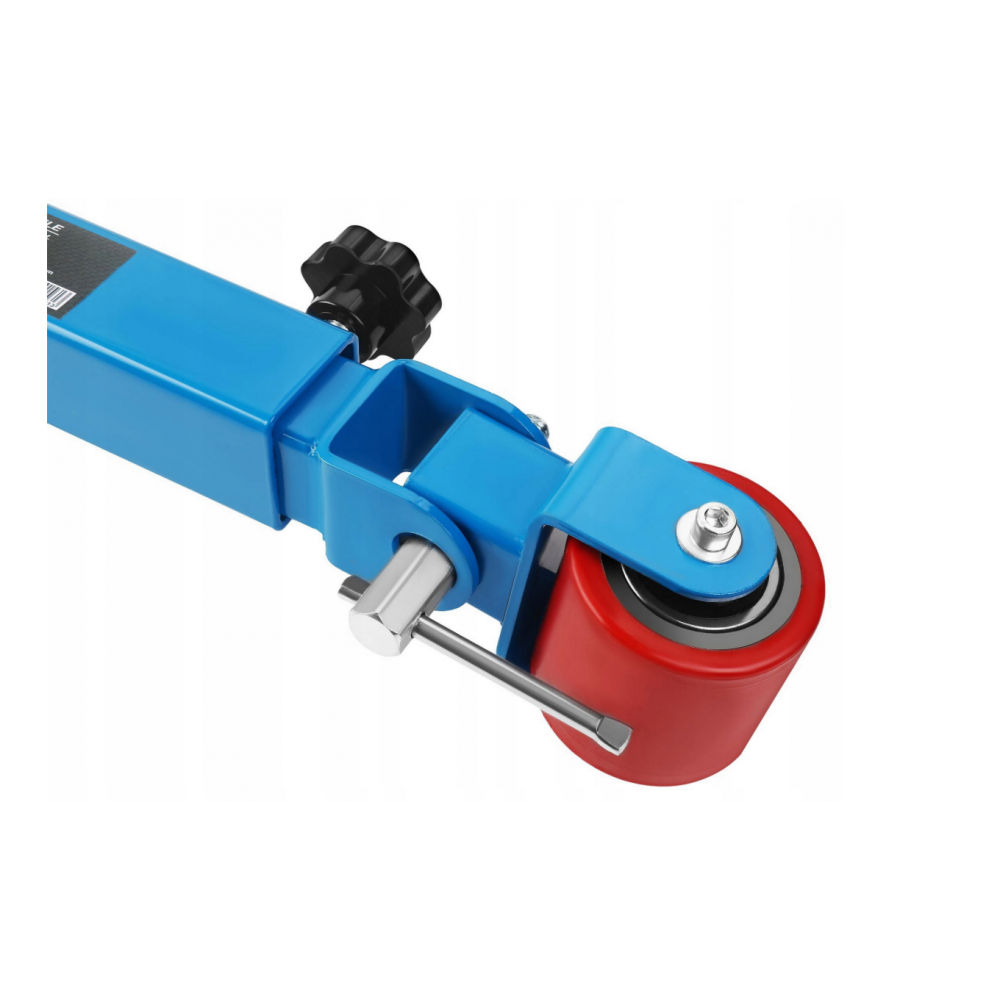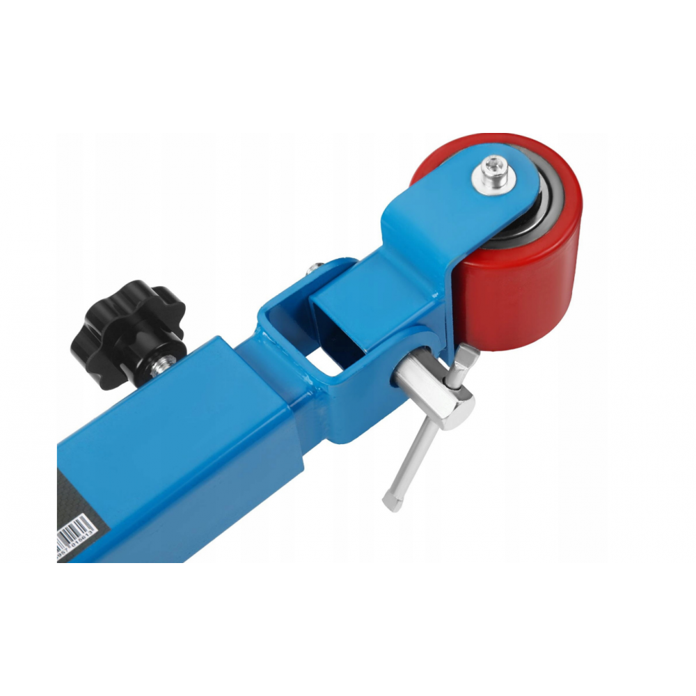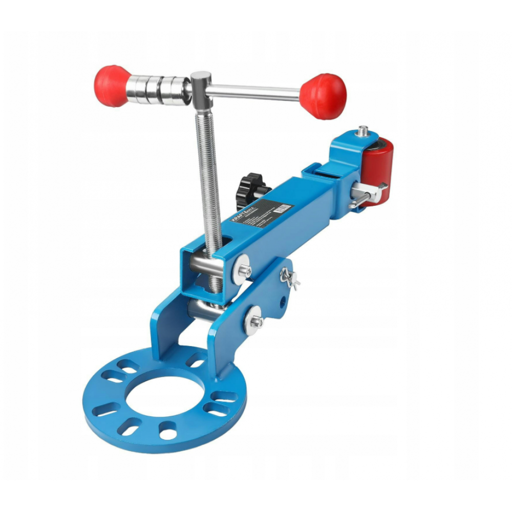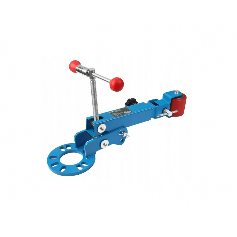 Pateicoties regulējamam vārpstas leņķim un divu līmeņu rumbas slīpumam, lietotājs var pielāgot ierīci jebkura veida riteņu arkām. Universāls ritenis ar 4 vai 5 skrūvju stiprinājumu, aizsargātiem stieņu galiem un izvelkamu sviru uzlabo komplekta funkcionalitāti, padarot to par neaizstājamu instrumentu jebkurā autoservisā.