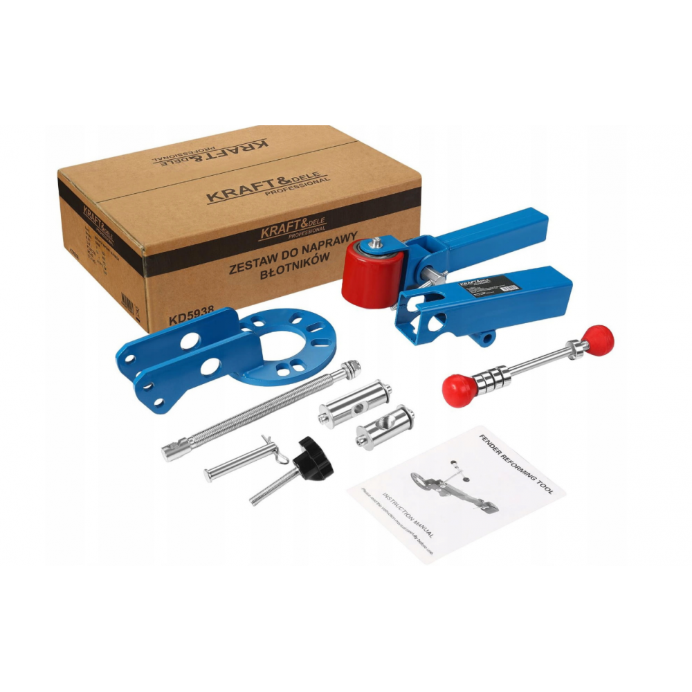 KD5938 ir profesionāls komplekts, kas paredzēts riteņu arku un spārnu remontam un iztaisnošanai. Ierīce ļauj ātri sagatavot riteņu arkas platākām riepām un precīzi noregulēt virsbūves detaļas pēc bojājumiem vai deformācijas. Tās izturīgā konstrukcija un regulējamās detaļas nodrošina ērtu lietošanu un drošību apkopes laikā.