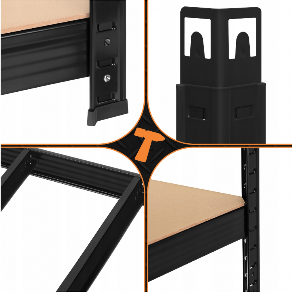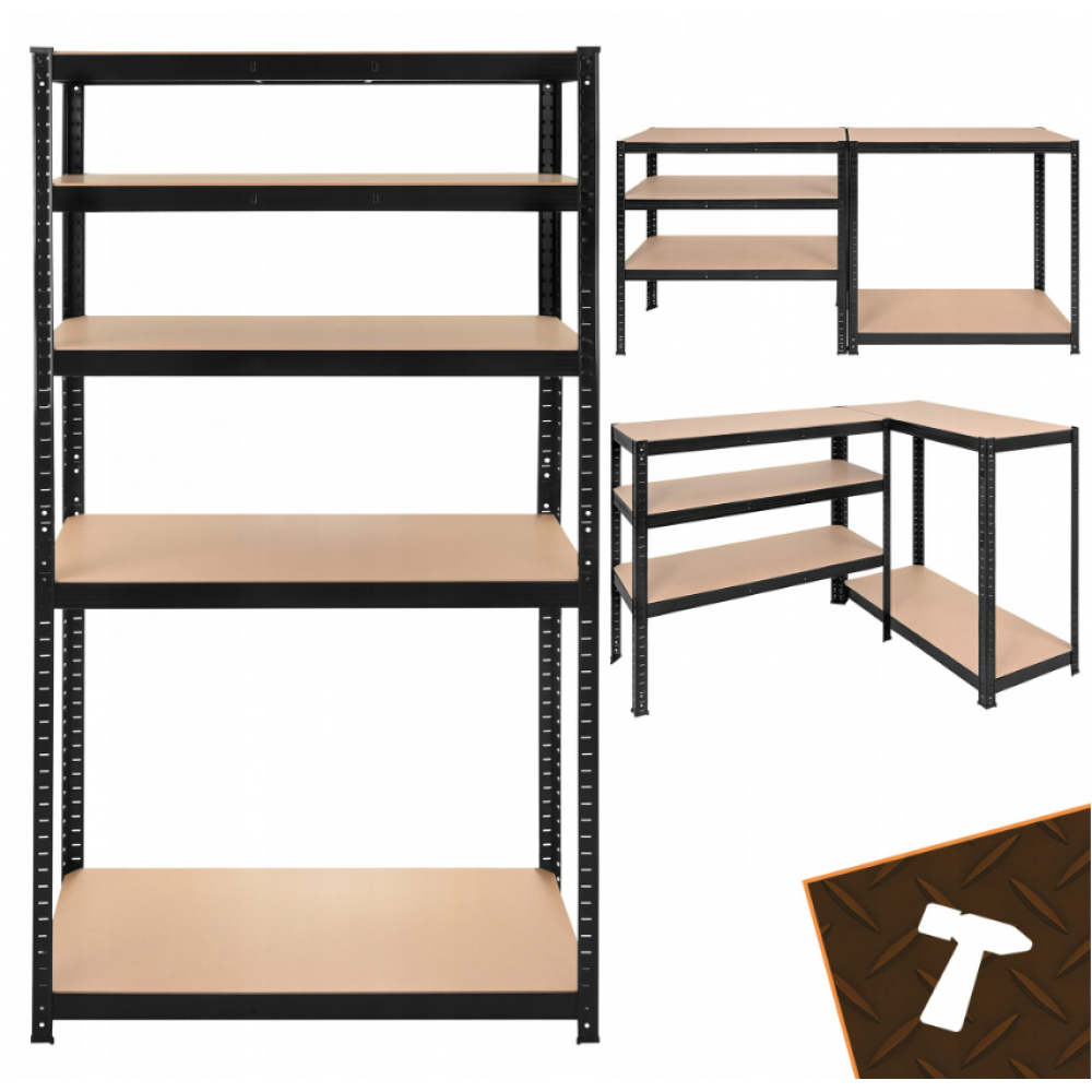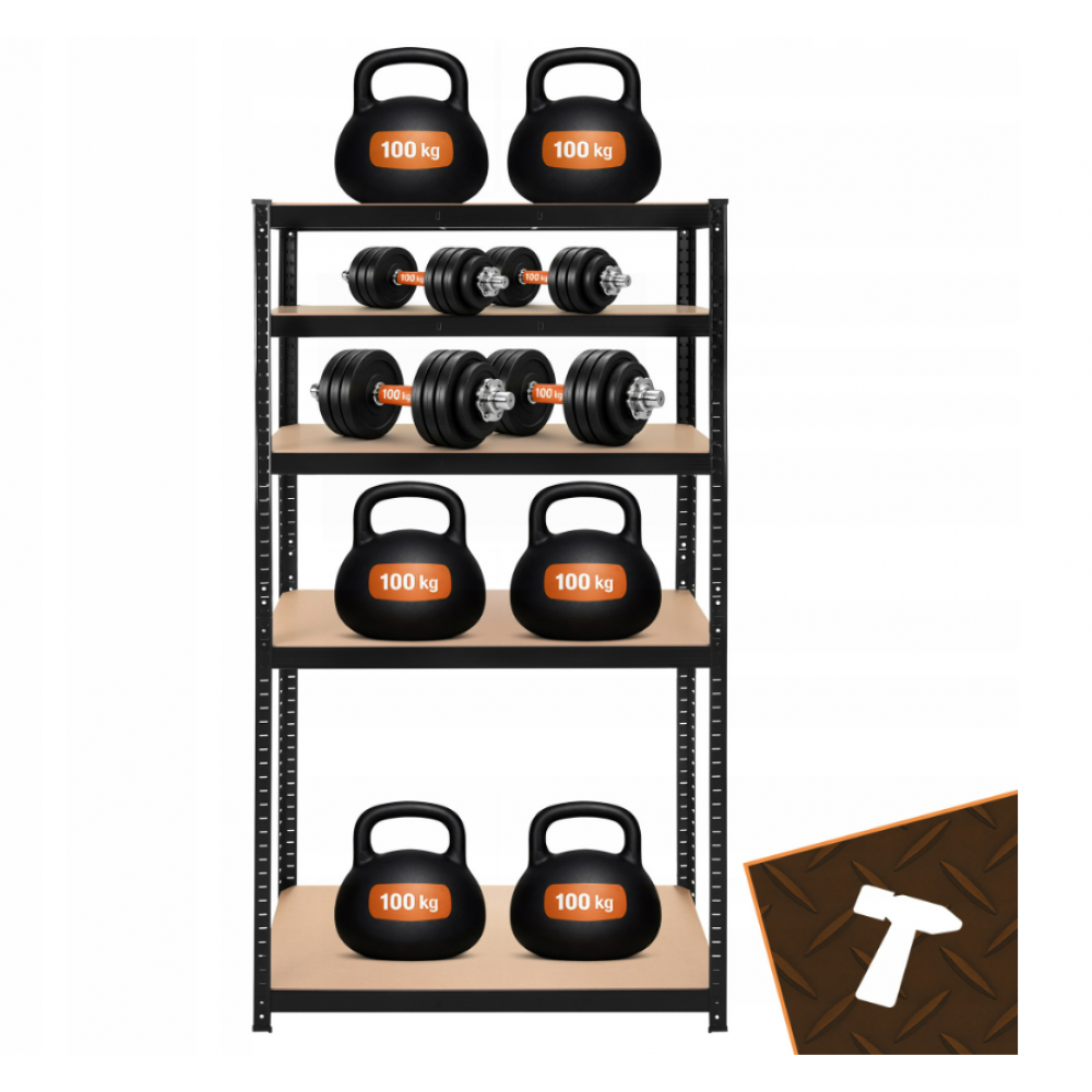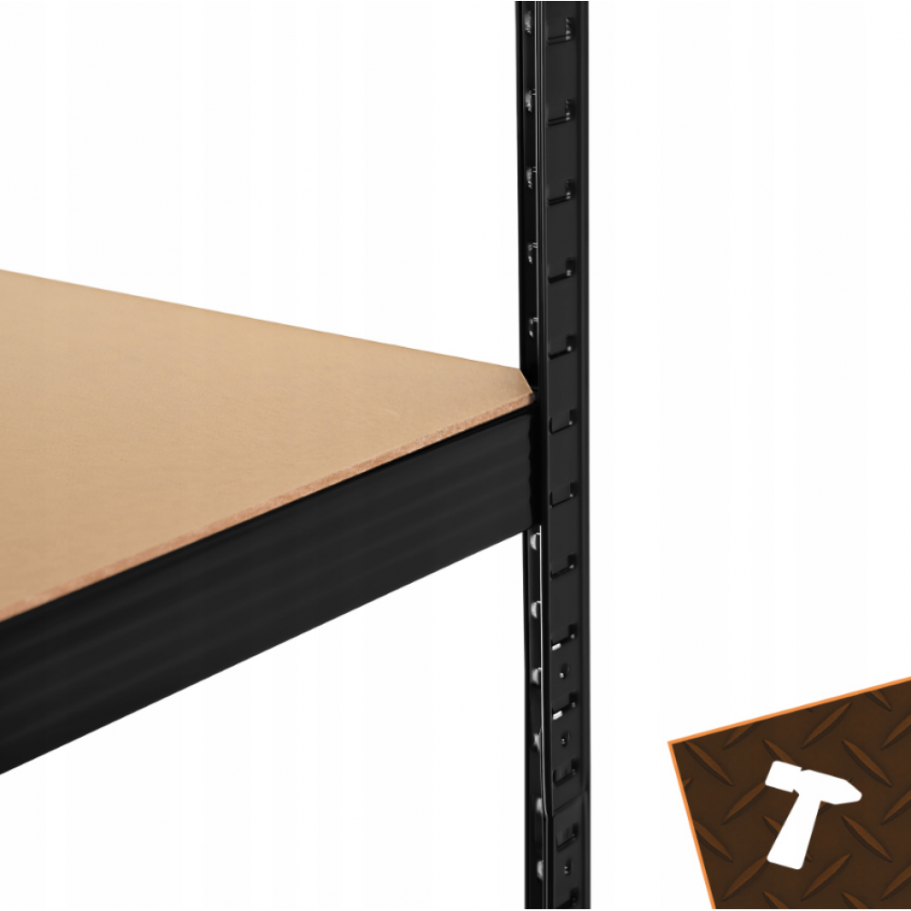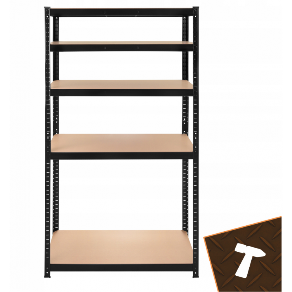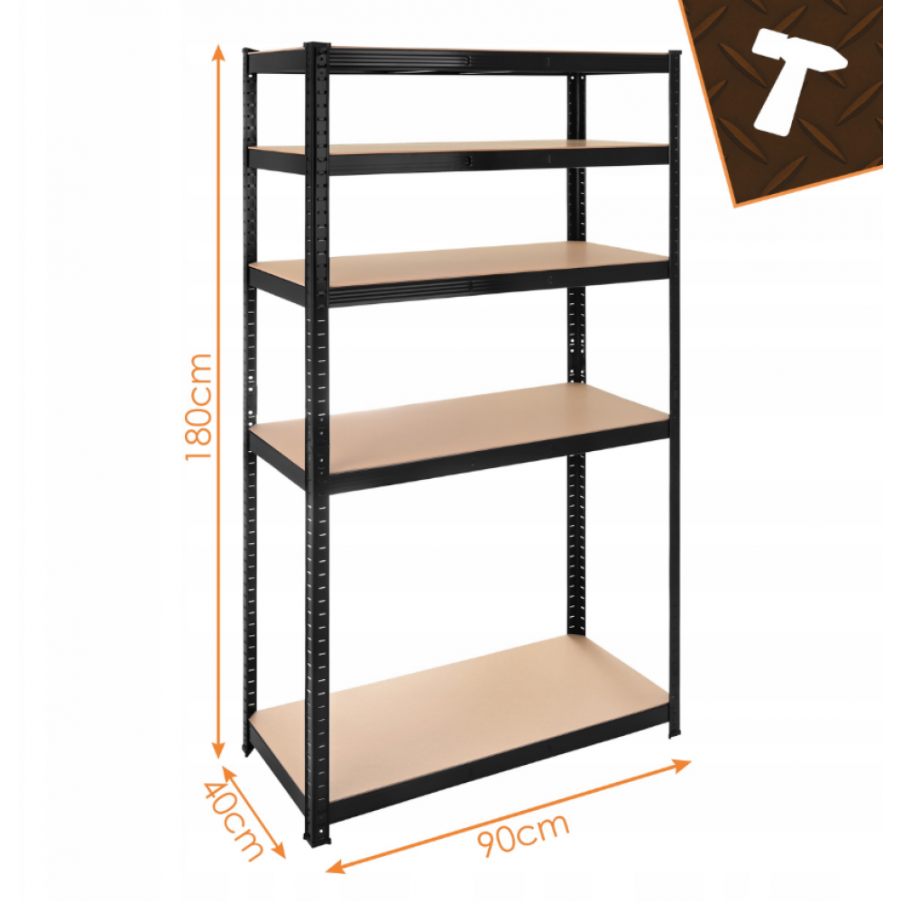 Tērauda uzglabāšanas plaukts 180x90x40 cm, Bigstreen, melns, pastiprināts, 5 MDF plaukti