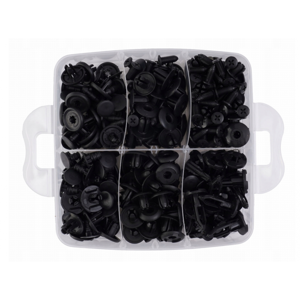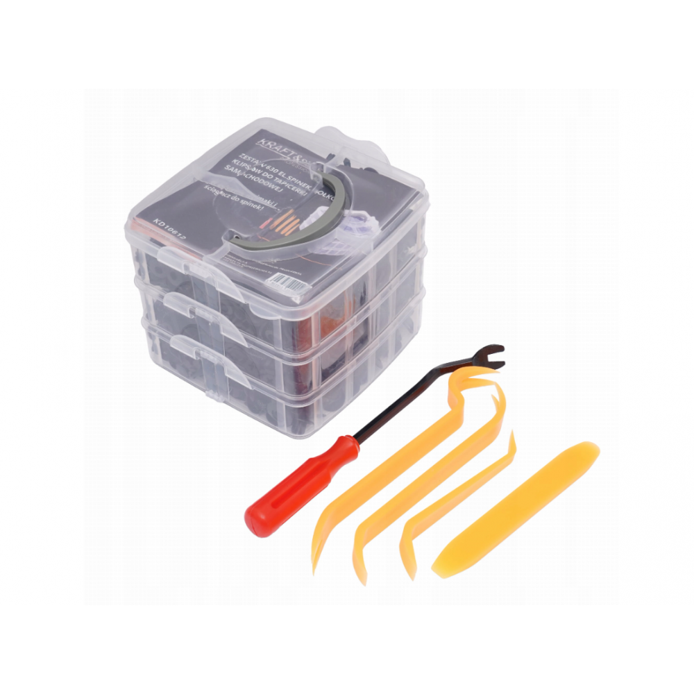 Kraf&Dele KD10612 modeļa 630 tapu, kniepju un klipšu komplekts automašīnas apdarei ietver 16 populārākos izmērus , kas parasti tiek izmantoti lielākajā daļā tirgū pieejamo automašīnu.