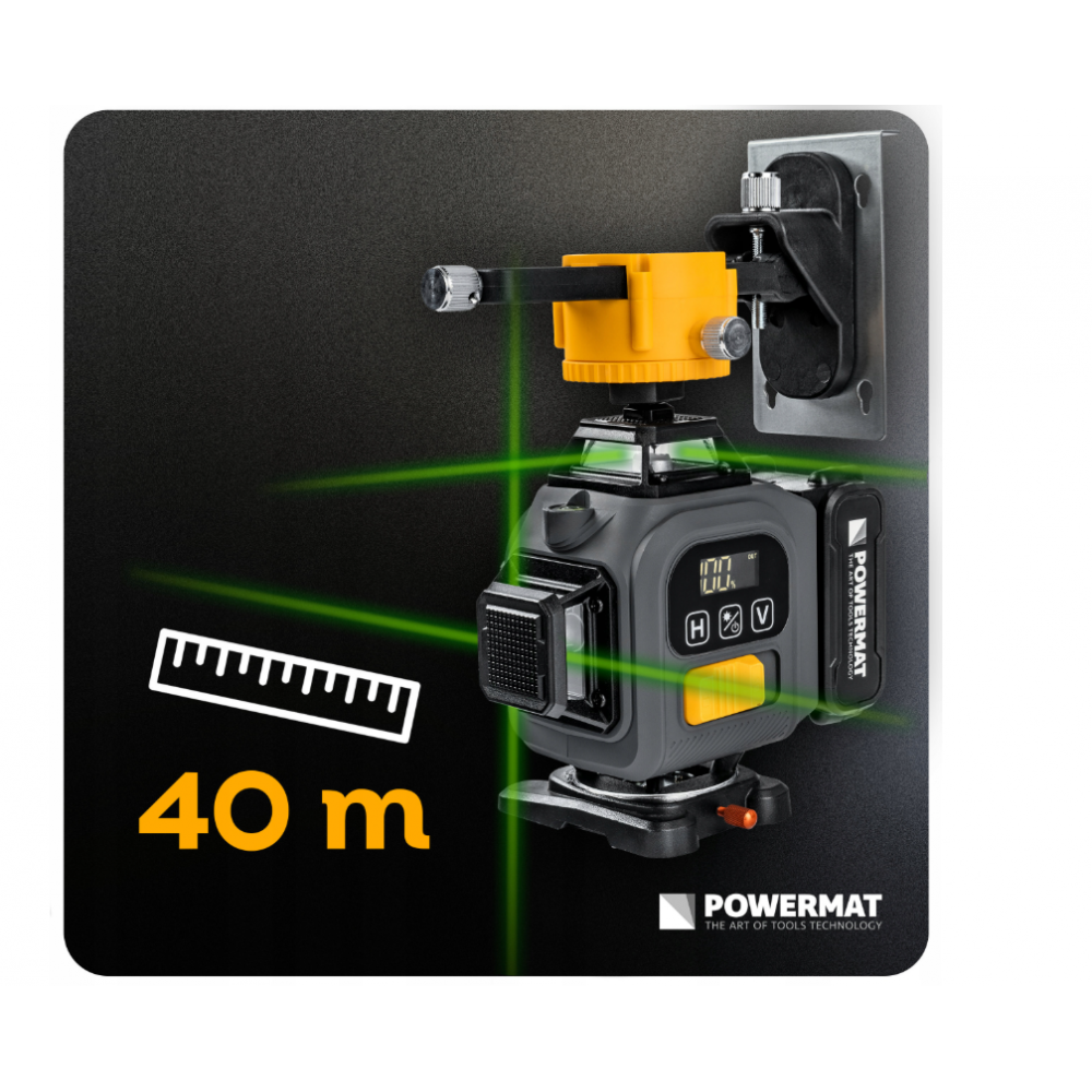 ▪️ Zaļais lāzers un 40 m rādiuss nodrošina ērtu redzamību un darbu bez minējumiem.