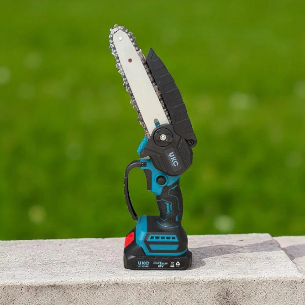 - Bezvadu ķēdes zāģis ar 6 collu sliedi.