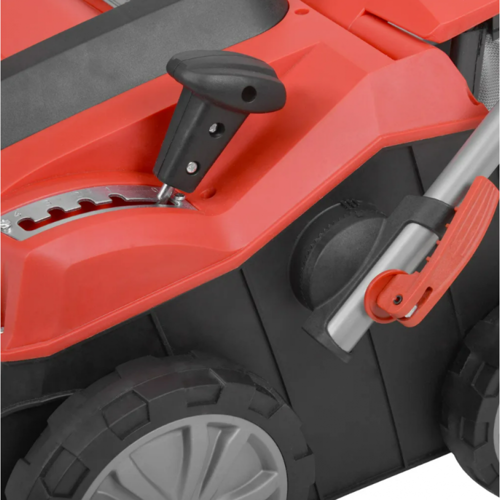 Darba dziļumu regulē centrāli no -13 līdz +9 mm. Plastmasas korpuss nodrošina vieglu svaru, kas sver tikai 13 kg. Pateicoties elektromotoram, aeratoram nepieciešama minimāla apkope. Tam ir arī virkne drošības funkciju, piemēram, drošības slēdzis un strāvas vada organizators.