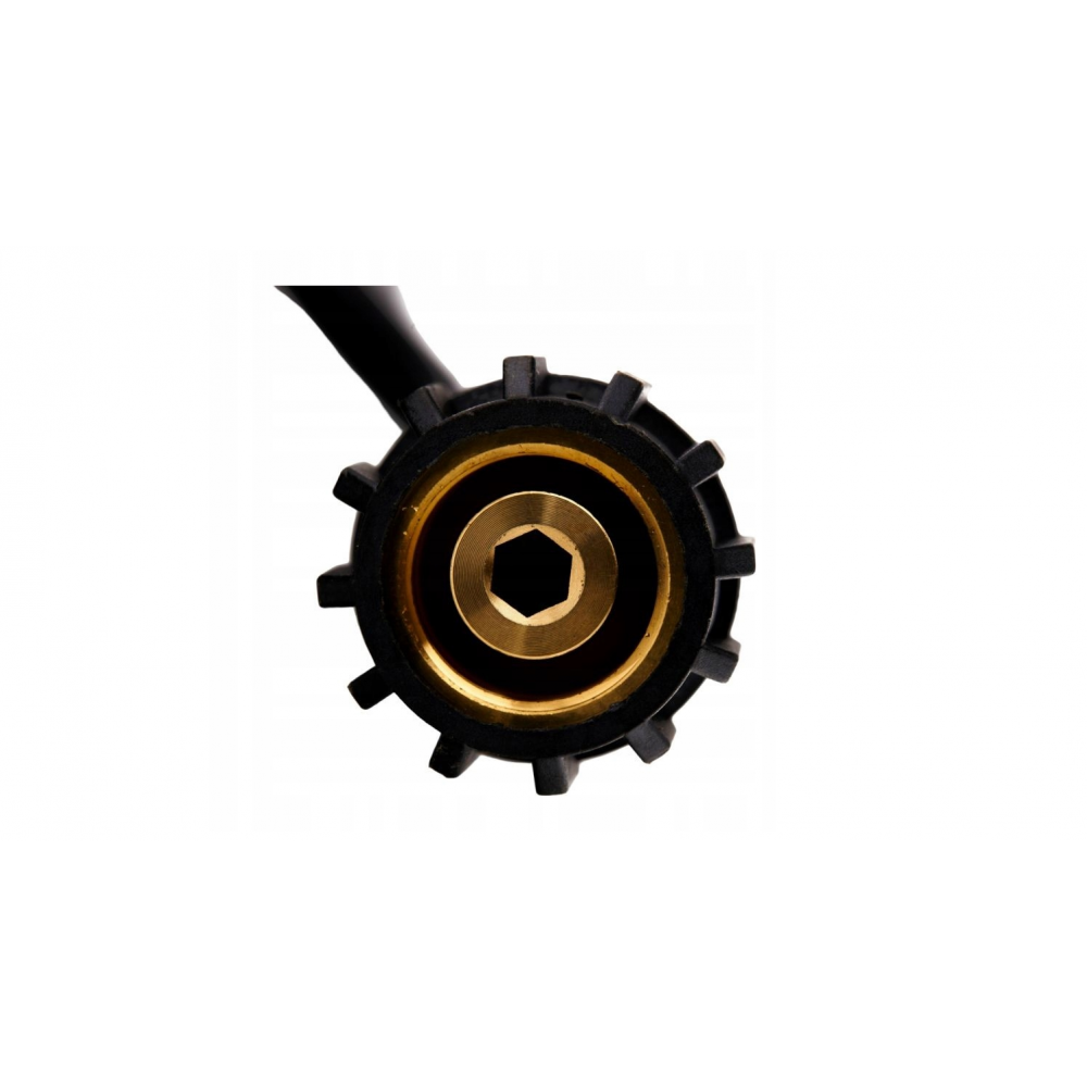 Šļūtene ir aprīkota ar cietu misiņa sfērisku uzgali, kas efektīvi sadala nogulsnes un aizsprostojumus. Šī forma ļauj šļūtenei viegli iekļūt dziļi caurulē, pat ap līkumiem un savienojumiem. Augsts ūdens spiediens ļauj rūpīgi izskalot piesārņotājus, atjaunojot pilnīgu sistēmas integritāti.