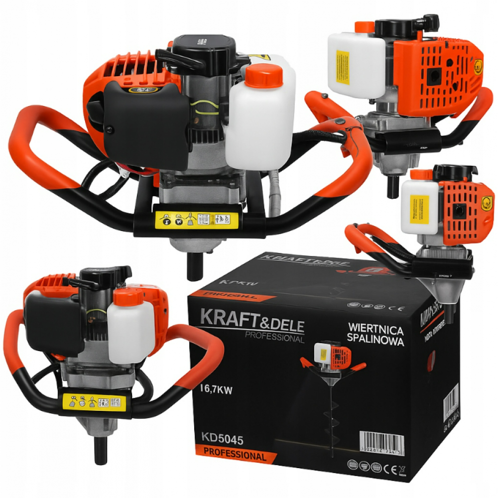 Profesionālā KD5045 benzīna urbjmašīna ar 6,7 kW jaudu ir uzticama ierīce, kas paredzēta zemes darbiem, piemēram, caurumu urbšanai žogiem, stabiem, stādiem, pamatiem un vieglām konstrukcijām. Tās jaudīgais iekšdedzes dzinējs nodrošina augstu veiktspēju un vienmērīgu darbību pat cietā zemē.