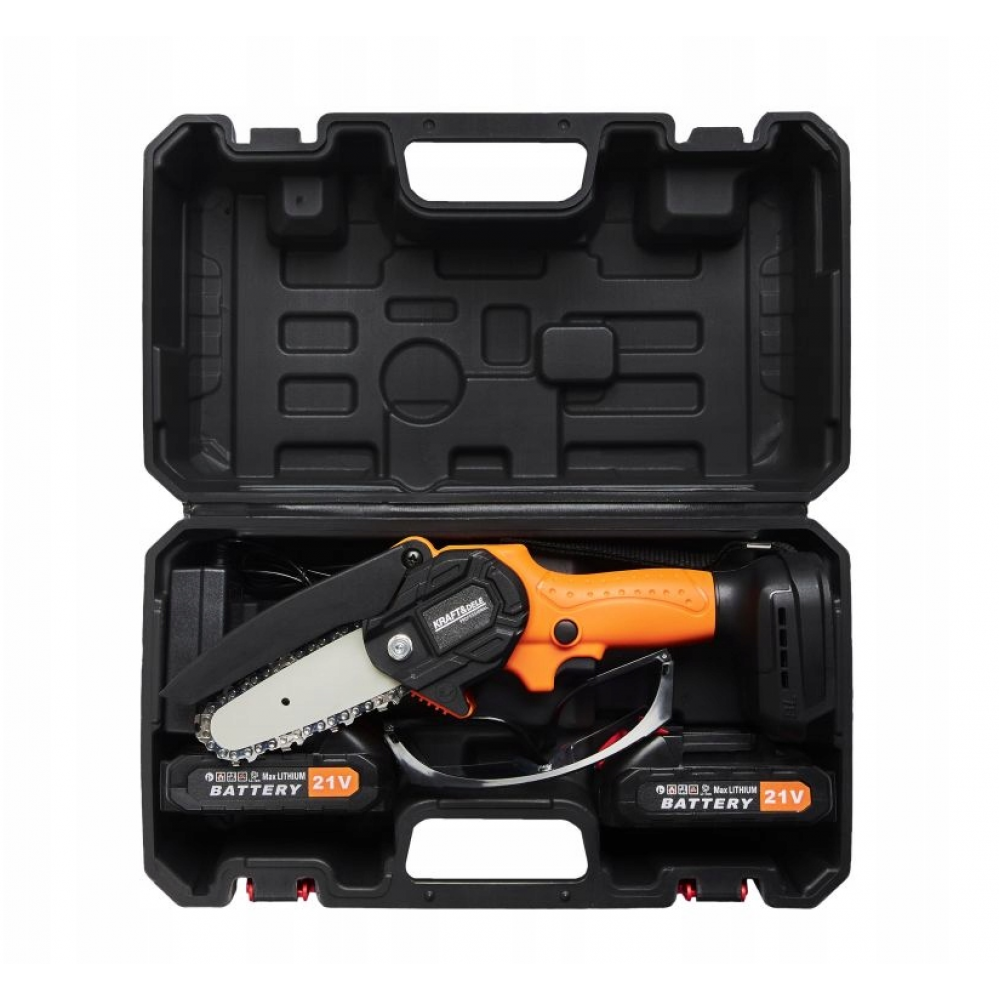 Akumulatora ķēdes zāģis 4 collu ar 2 x 21 V 1,5 Ah akumulatoriem (KD10627)