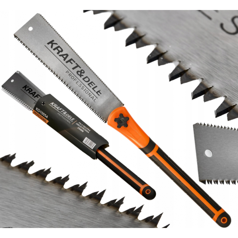 ✅Šis profesionālais rokas zāģis no Kraft & Dele, modelis KD10054, ir paredzēts dažādu koksnes veidu ātrai un vienkāršai griešanai. Mūsu zāģa galvenā priekšrocība ir tā divpusējais dizains, kas nodrošina vienmērīgus griezumus gan šķērsvirzienā (trapecveida zobi), gan gareniski (trīsstūrveida zobi) koksnes šķiedrai.