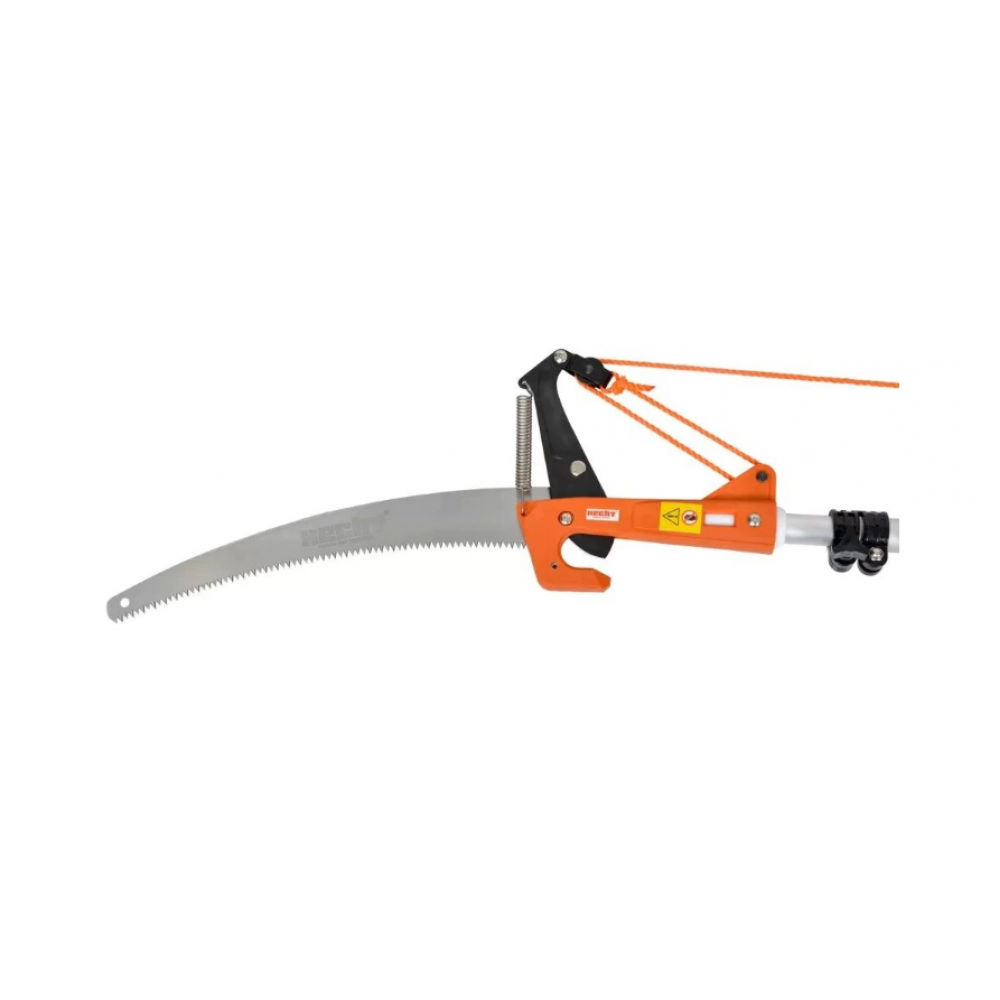 - Tiem ir garš rokturis, pateicoties kuram grūti sasniedzamus koka vainaga zarus var nogriezt, neizmantojot kāpnes, griešana kļūst ātra, vienkārša un droša.