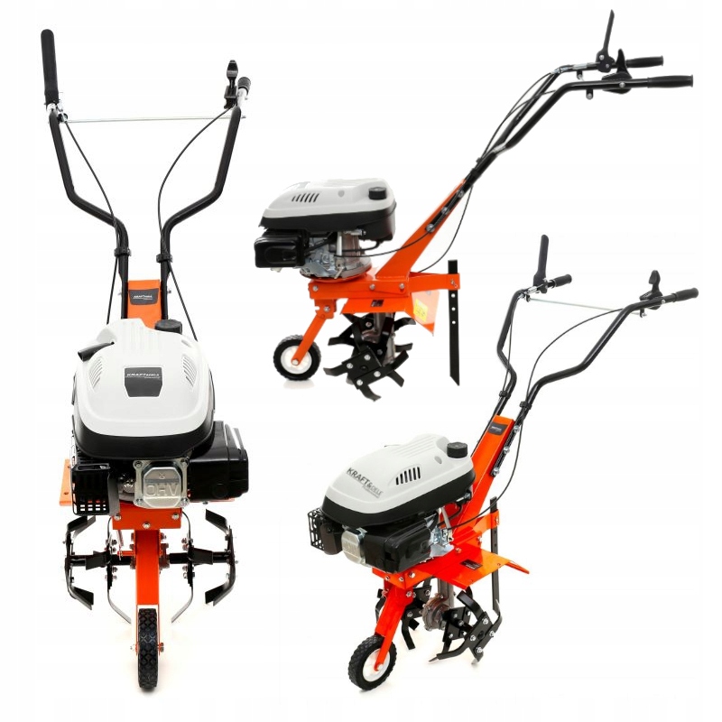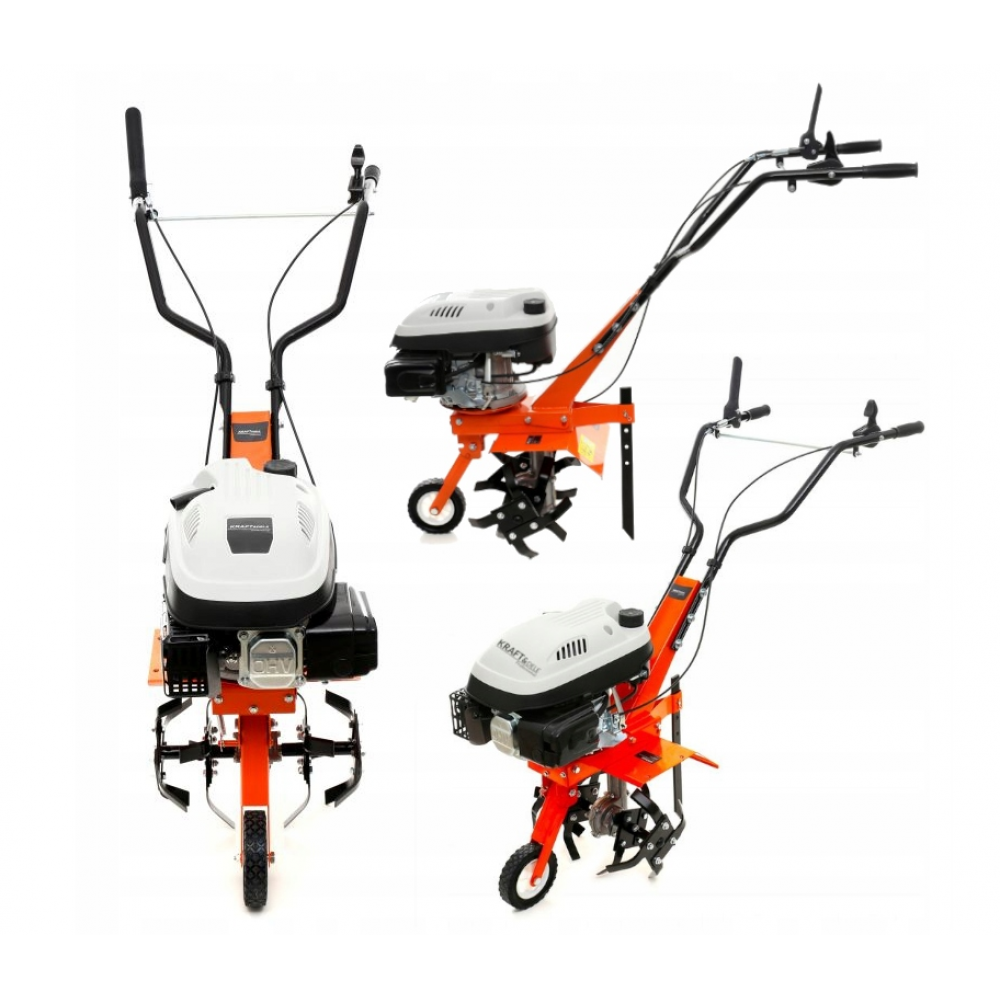 KRAFT&DELE benzīna kultivators , kas paredzēts augsnes irdināšanai un mēslošanas līdzekļu, komposta un kūdras izkliedēšanai mājas dārzos.