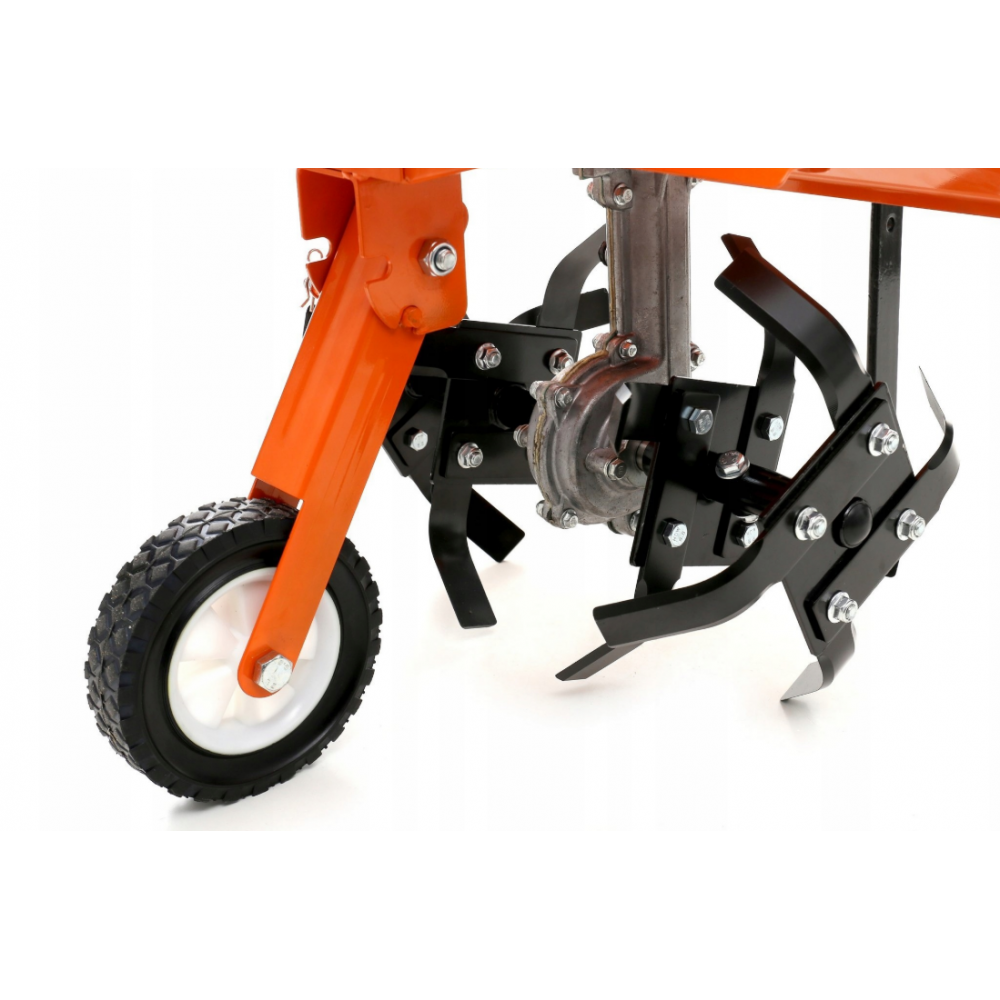 Lielais ritenis ļauj ērti pārvietot kultivatoru pat ļoti nelīdzenā reljefā.