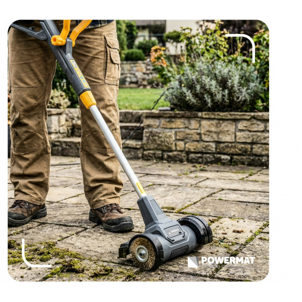 800 W motors nodrošina reālu jaudu nezāļu un sūnu iztīrīšanai no plaisām. Vairs nav jātērē laiks manuālai skrāpēšanai, un jūs varat strādāt ātrāk un precīzāk uz bruģa un apmalēm.