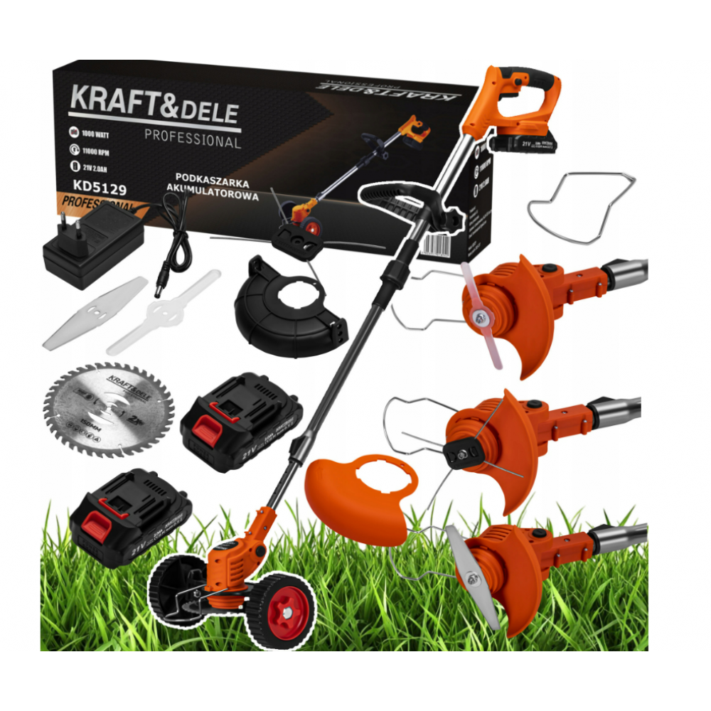 - ✔️ Komplektā iekļautas divas baterijas — nodrošina ilgāku darbību, nepārtraucot pļaušanu,