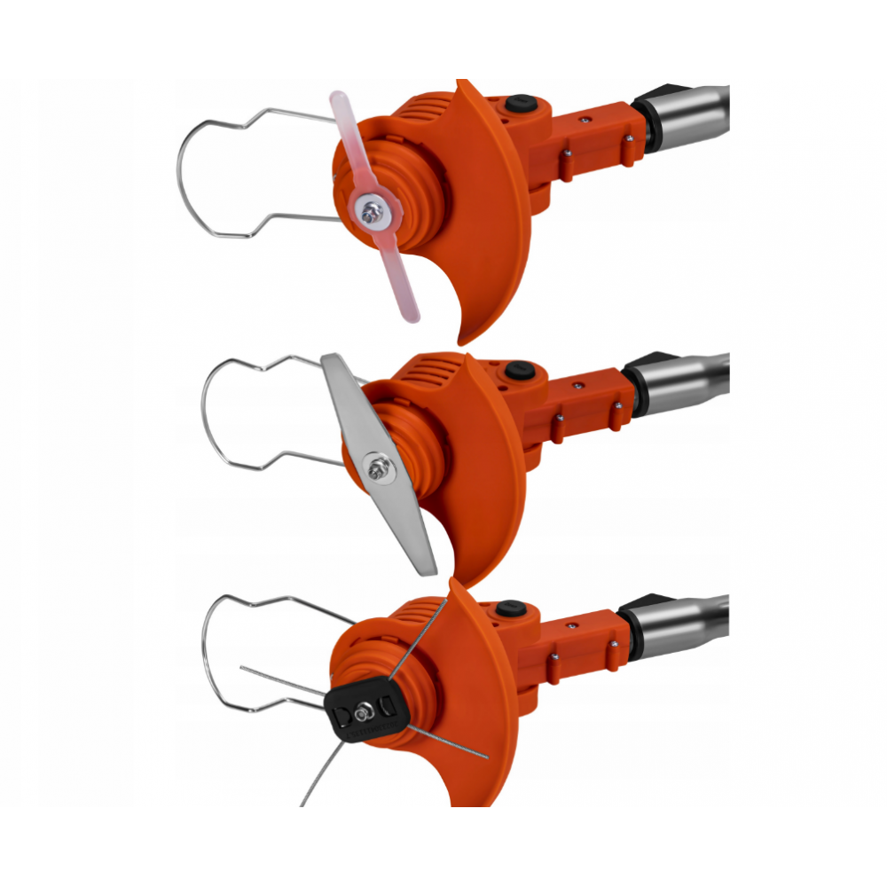 ✔️Teleskopiskā garuma regulēšana ļauj pielāgot aprīkojumu lietotāja augumam, un iespēja mainīt galvas leņķi palielina pļaušanas komfortu dažādās pozīcijās.