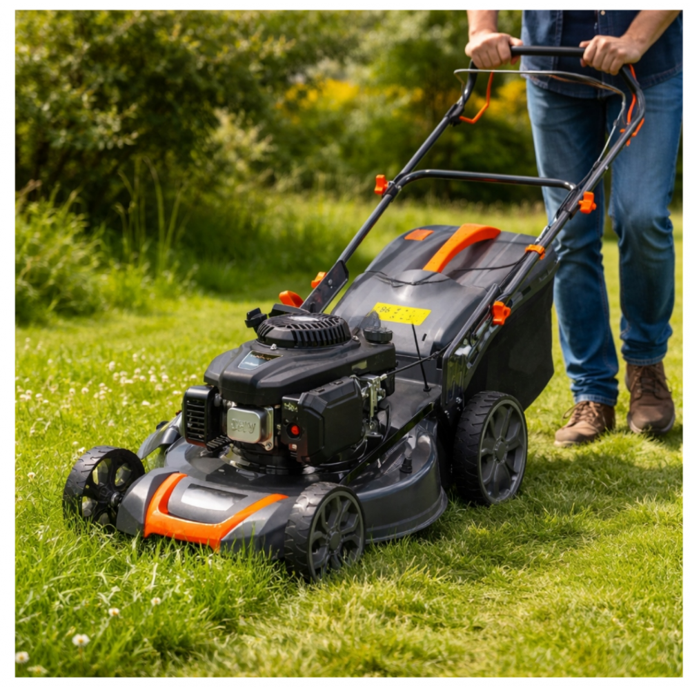 ?? ️Lielie riteņi uzlabo pļaujmašīnas vadāmību un atvieglo manevrēšanu, savukārt ergonomiskais rokturis palielina ekspluatācijas komfortu pat ar ilgāku darbību.