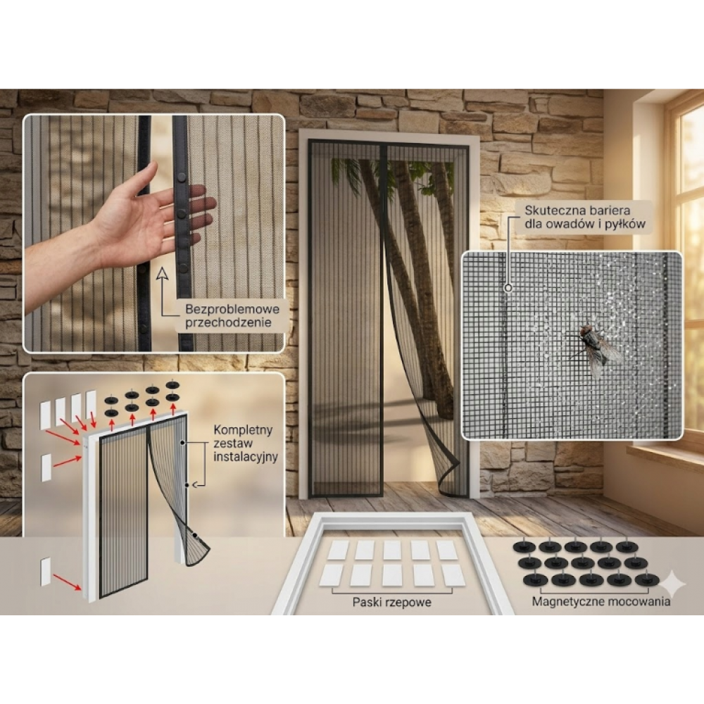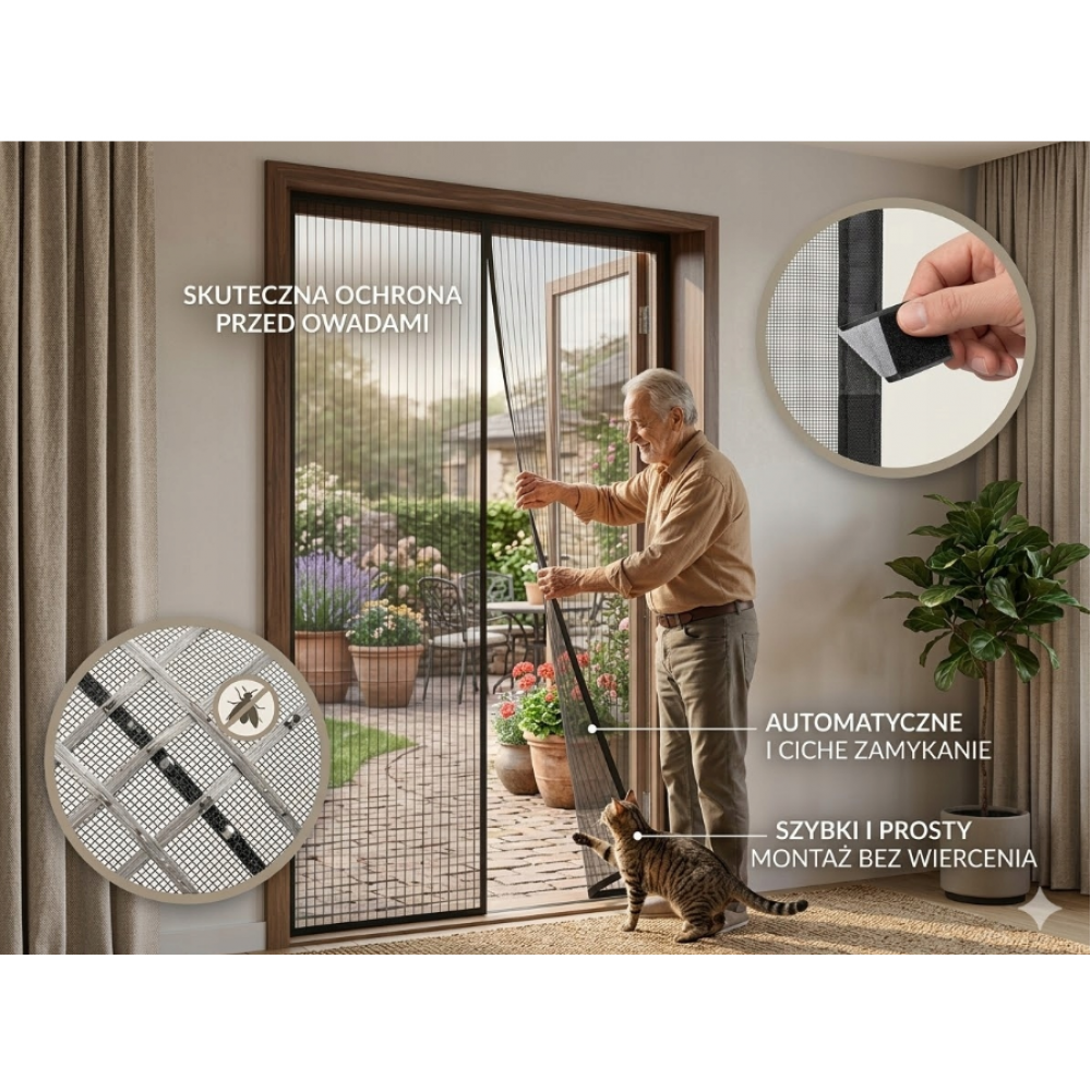 - VIENKĀRŠA UZSTĀDĪŠANA – Durvju sietu ir ļoti viegli uzstādīt, un ikviens to var viegli izdarīt. Nav nepieciešami īpaši instrumenti vai prasmes. Kukaiņu siets tiek piestiprināts, izmantojot Velcro līplenti ap visām malām , padarot to ļoti ērtu un ātru. Šis risinājums neļaus pat vismazākajiem kukaiņiem iekļūt iekštelpās .