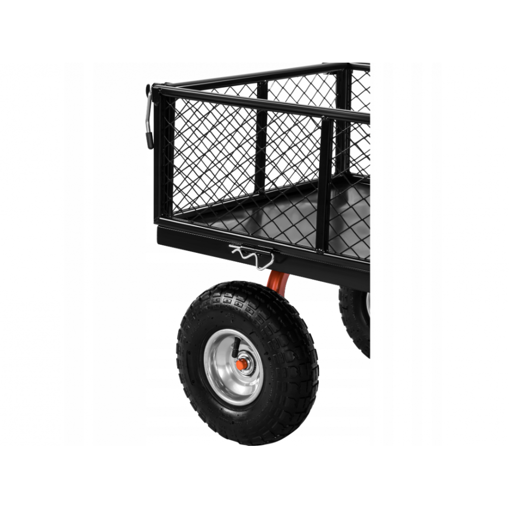 125 litru un 400 kg dārza transportēšanas ratiņi ir izturīgs un funkcionāls risinājums smagu materiālu pārvadāšanai dārzā, saimniecībā, augļu dārzā, mazdārziņā un būvlaukumā . Ar lielu 125 litru ietilpību un maksimālo kravnesību 400 kg ratiņi ir ideāli piemēroti augsnes, koksnes, smilšu, akmeņu, instrumentu, mēslošanas līdzekļu un kultūraugu pārvadāšanai . To cietā tērauda konstrukcija , izturīgā kaste un 4 pneimatiskie riteņi nodrošina ērtu darbību pat sarežģītā reljefā, savukārt apgāšanas funkcija ievērojami atvieglo ātru izkraušanu.