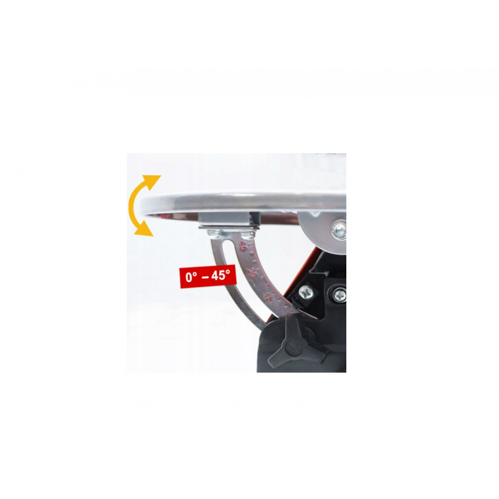 Прочная стальная рама обеспечивает надежную опору. Рабочий стол размером 255 x 415 мм наклоняется на 45°, что позволяет быстро и легко выполнять резку в различных плоскостях. Практичная опорная ножка для заготовки обеспечивает безопасную и точную работу. Это позволяет вырезать любые контуры. Максимальная высота резки при 90° составляет 50 мм, а при 45° — 20 мм.