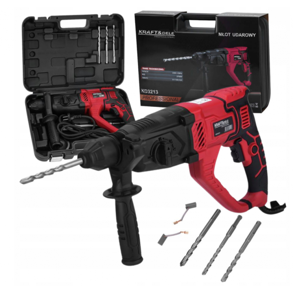 Ударный молоток KD3213 2700W — это прочный инструмент, предназначенный для сложных строительных и ремонтных работ. Оснащенный системой SDS-plus и возможностью изменения направления вращения, он позволяет выполнять точное сверление и долбление в различных материалах.