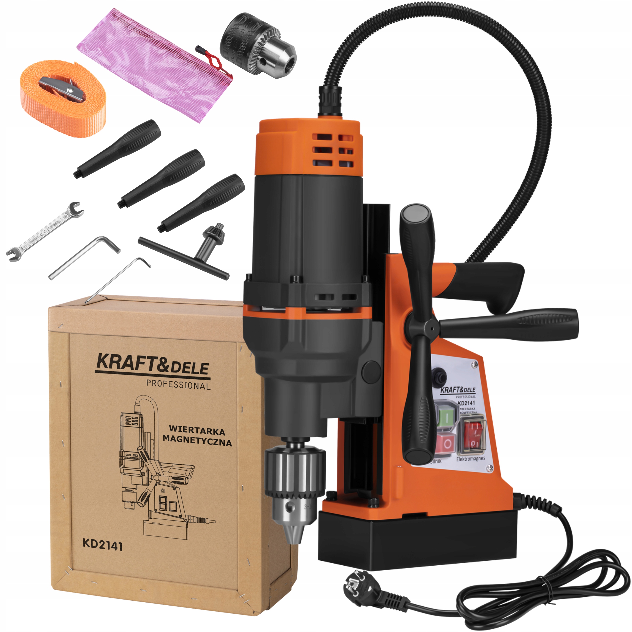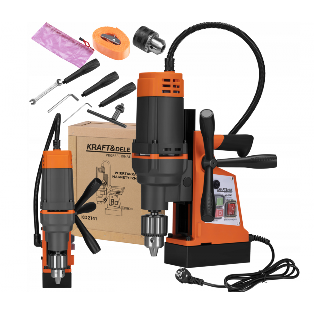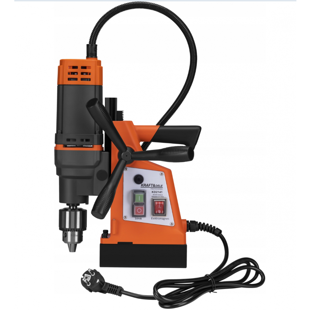 Модель KD2141 он оснащен эргономичным управлением, отдельными выключателями двигателя и электромагнита и удобной трехплечей направляющей ручкой. Твердый патрон сверла гарантирует прочный захват инструмента, а компактная конструкция позволяет легко транспортировать и эксплуатировать его в различных условиях. Это надежный инструмент для каждого специалиста, который рассчитывает на точность, мощность и долговечность.