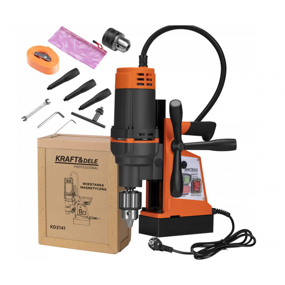 KD2141 это профессиональная магнитная дрель бренда KRAFTDELE, предназначен для точного сверления в стальных конструкциях и металлических элементах высокой твердости. Мощный Двигатель 2200ВТ соединен с силогенерирующим электромагнитом 17 000 Н он обеспечивает исключительную эксплуатационную устойчивость, что позволяет безопасно бурить на высоте или в труднодоступных местах. Устройство идеально подходит для цехов, компаний, производящих стальные конструкции, промышленной сборки.