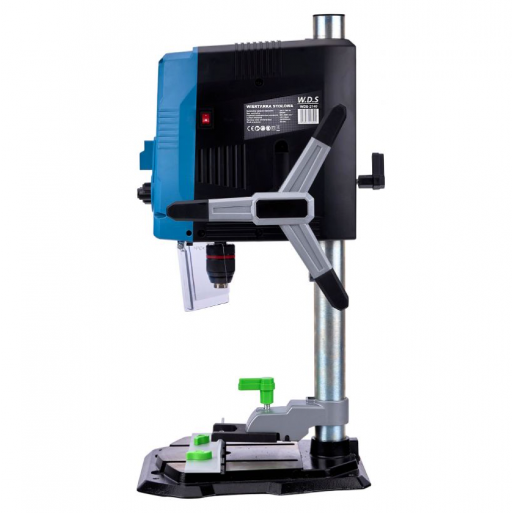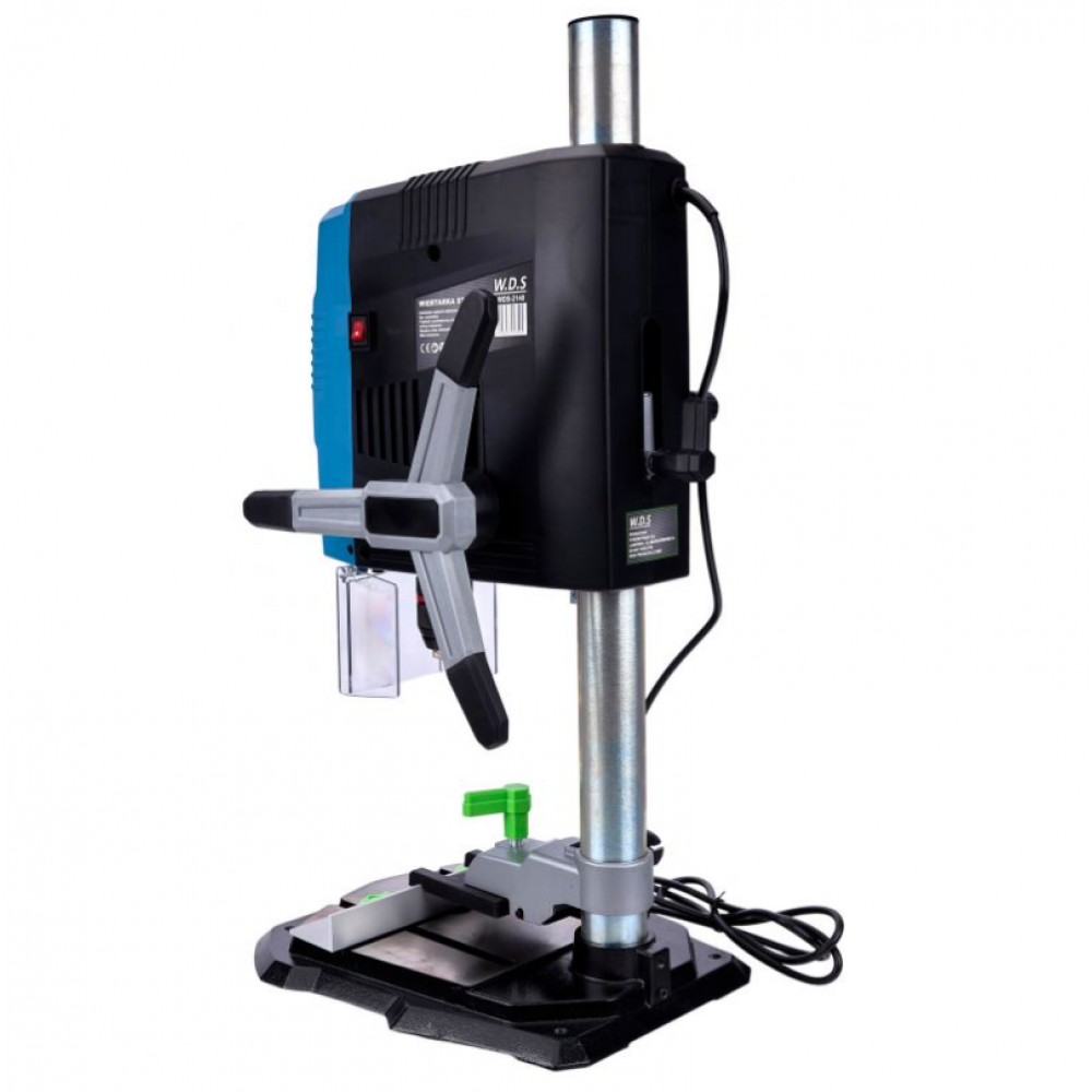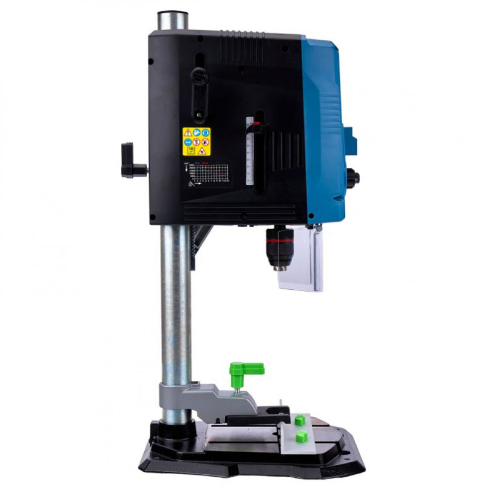 Дрель оснащена устойчивым, прочным и регулируемым рабочим столом, а также тисками.