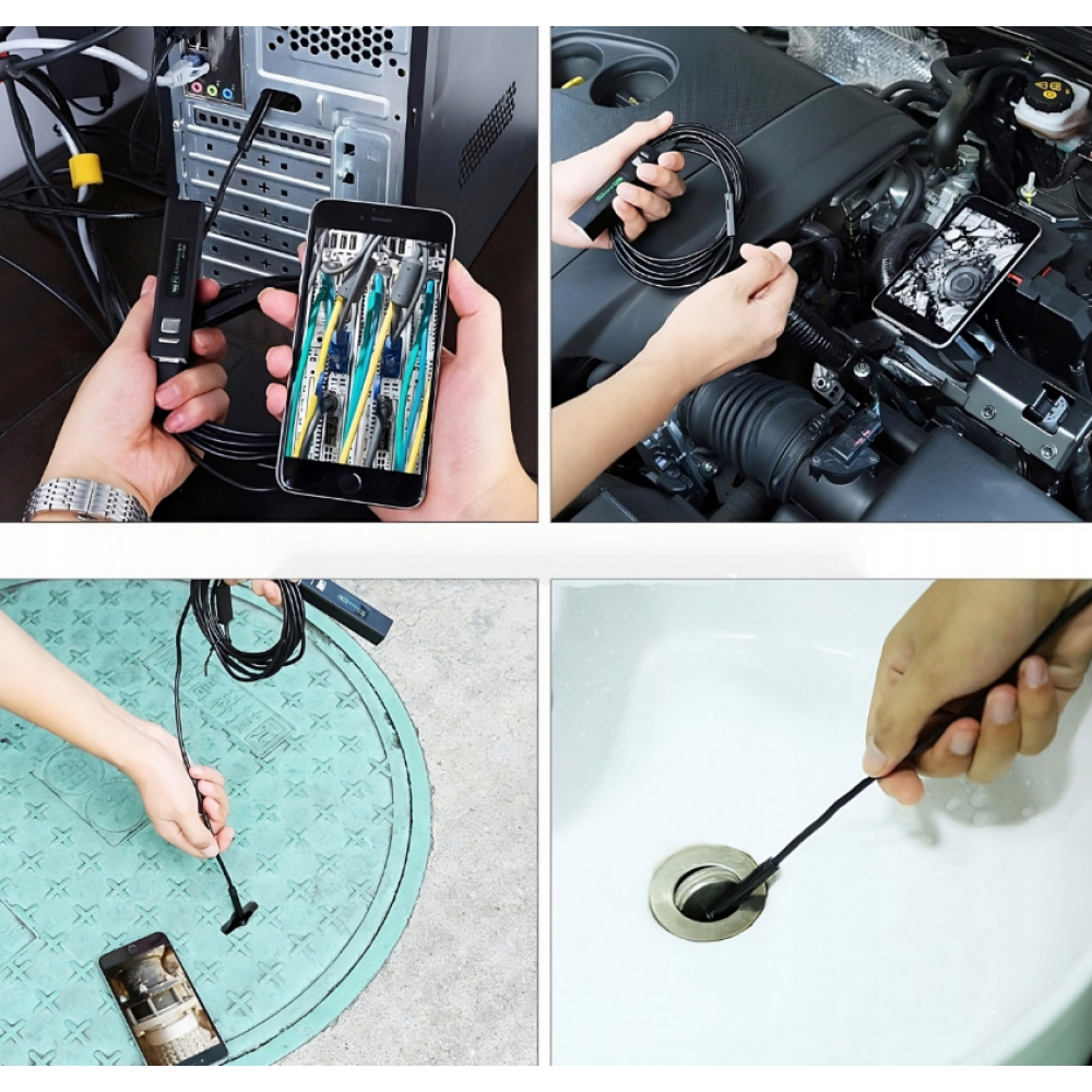 Наш эндоскоп можно использовать практически с любым устройством. Входящий в комплект USB-кабель позволяет подключить его к компьютеру на базе Windows или Apple. Он также легко подключается к мобильным устройствам, таким как смартфоны и планшеты. Он поддерживает Android и iOS.