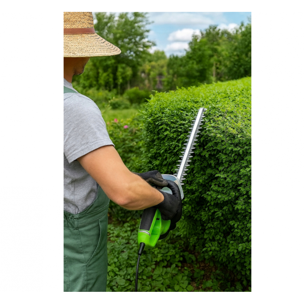 W elektromotors ļauj griezt resnus zarus ar maksimālo