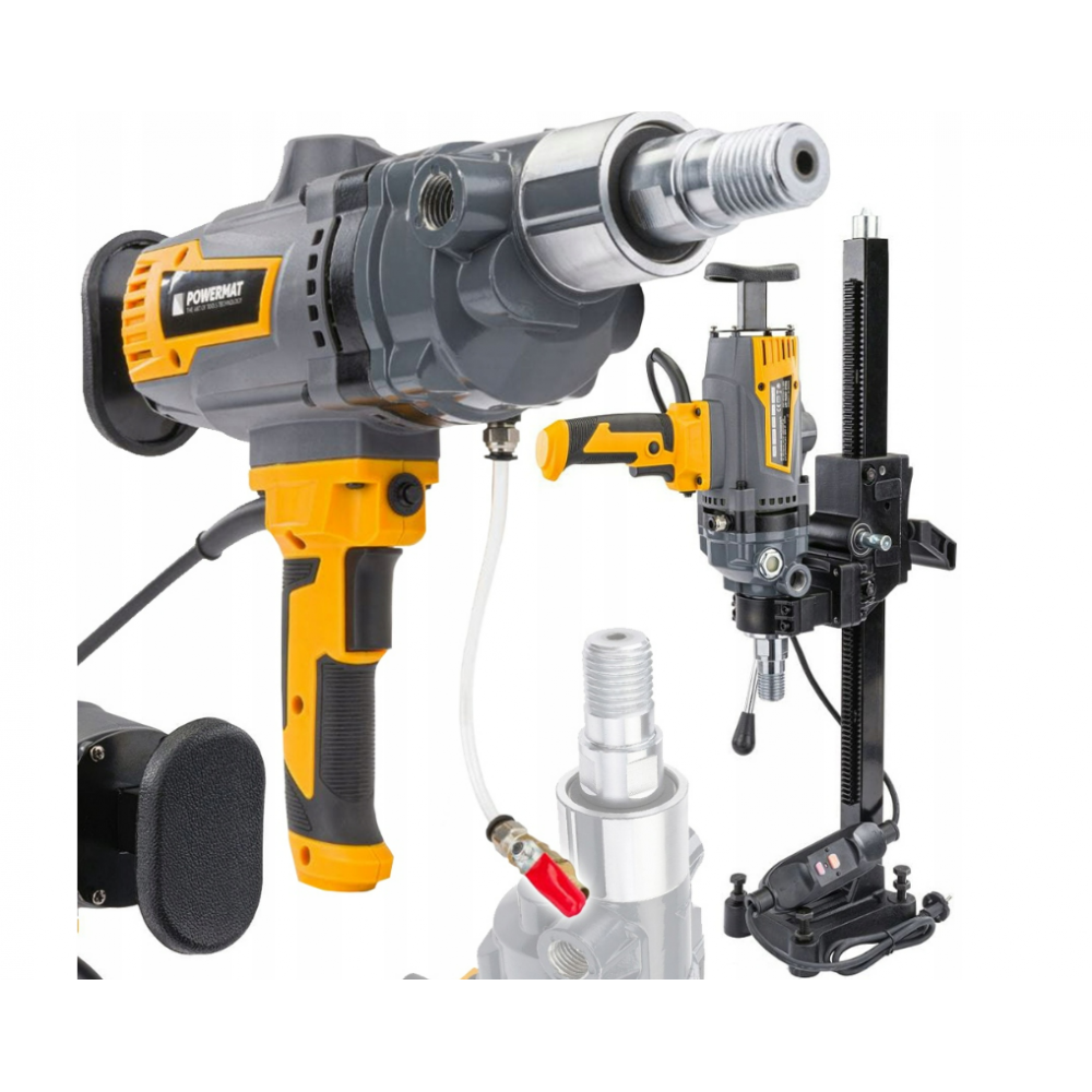 Ierīce ir paredzēta arī darbam uz statīva, nodrošinot lielāku stabilitāti un precizitāti urbšanas laikā. Ar POWERMAT betona urbi jūs būsiet lieliski aprīkots gan profesionālai lietošanai būvlaukumos, gan lietošanai mājās.