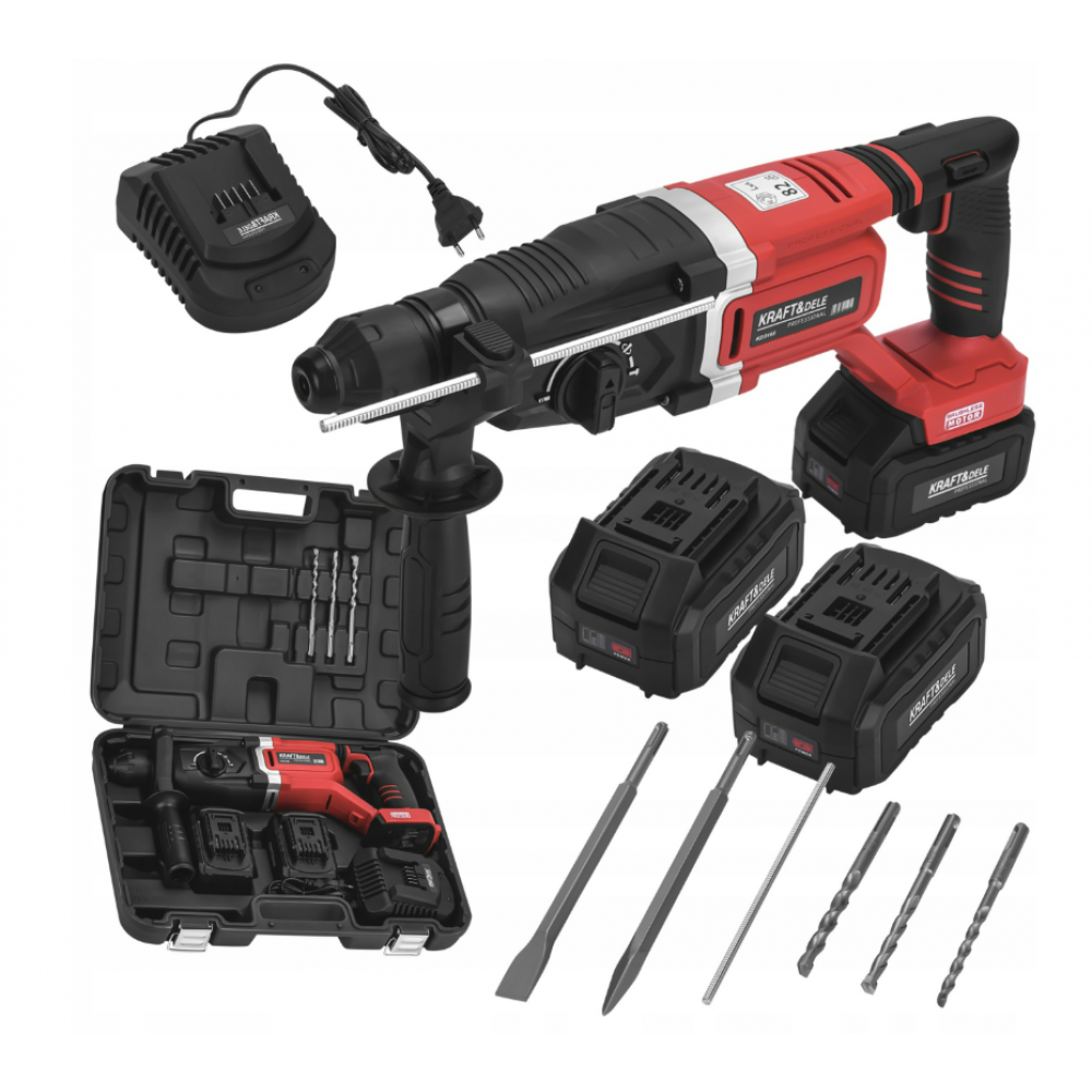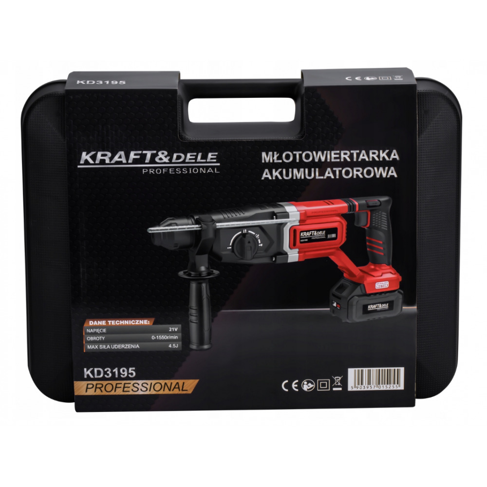 KD3195 demontāžas āmurs ir daudzpusīgs un uzticams instruments, kas paredzēts profesionāliem būvniecības un renovācijas darbiem. Pateicoties 21 V barošanas avotam un 1000 W motoram, tas nodrošina augstu efektivitāti gan urbšanā, gan kalšanā.