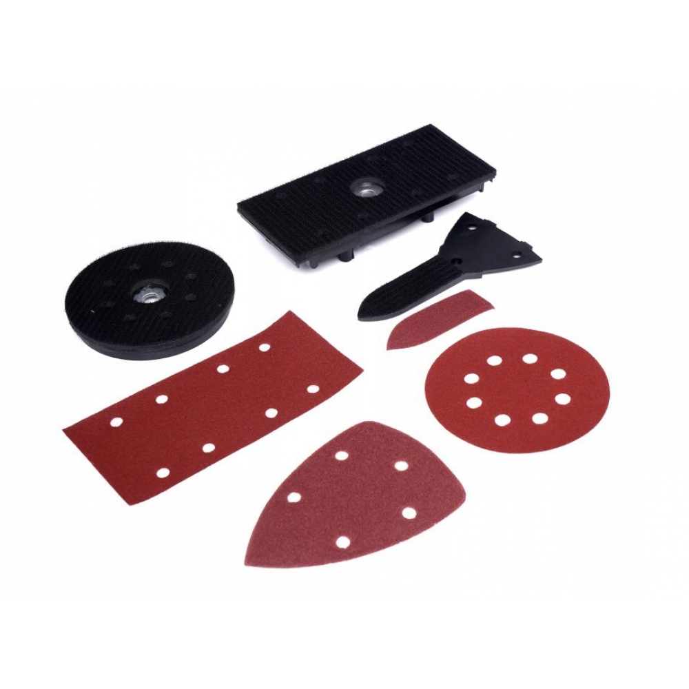 Smilšpapīra maiņa ir bez instrumentiem, un diski ir piestiprināti ar Velcro līplenti. Komplektā ietilpst arī putekļu maisiņš, lai jūsu darbs būtu tīrs.