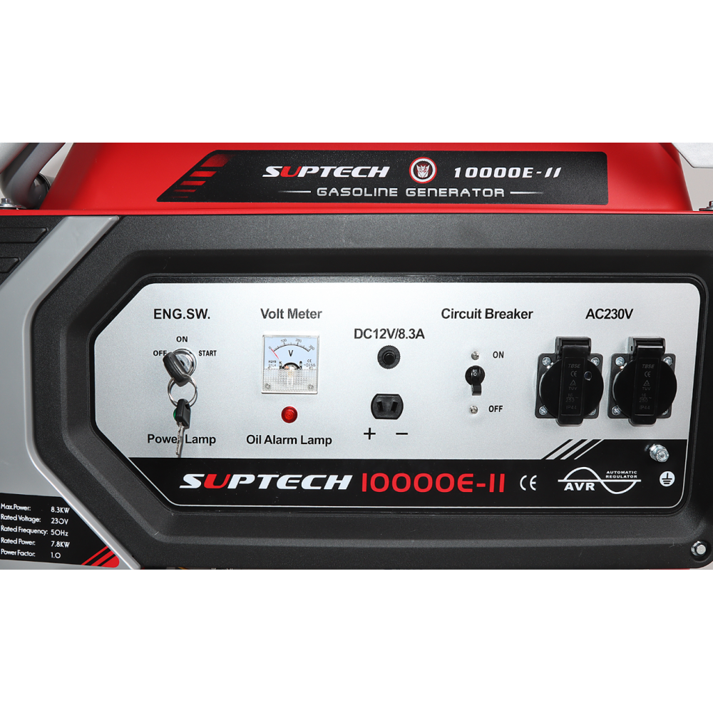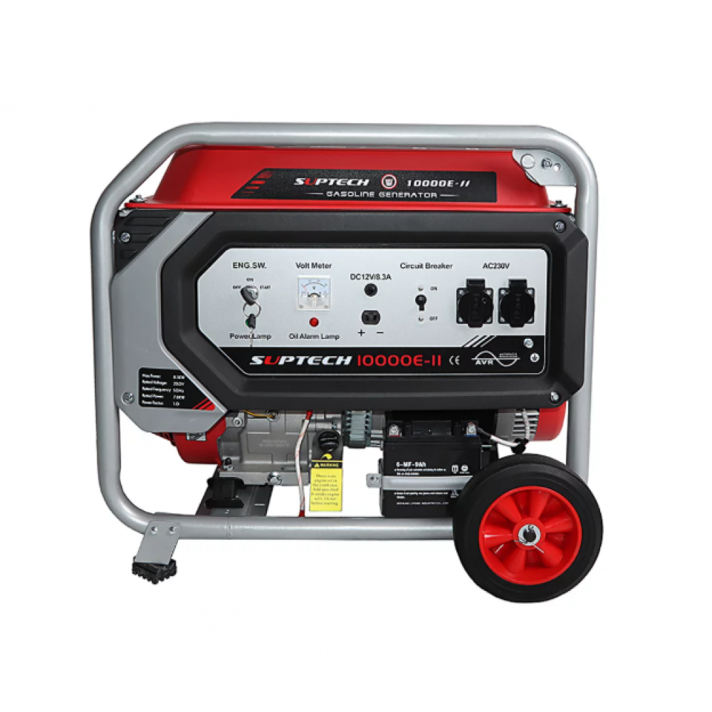 Benzīna ģenerators ar četrtaktu dzinēju SUPTECH, jaudīgs, tomēr ļoti kompakts, viegli transportējams ar rokturiem un riteņiem. Benzīna ģenerators ar četrtaktu dzinēju, var tikt izmantots gan dārzkopībā, lauksaimniecībā, gan celtniecībā. Šis ir ļoti izturīgs, augstas kvalitātes un jaudīgs ģenerators ar 100% vara tinumiem. Šīs ierīces dzinējam ir eļļas līmeņa indikators, ļoti vienkāršs elektriskais starts un tas darbojas perfekti neatkarīgi no darba temperatūras apstākļiem. Pateicoties tā jaudai, mobilitātei un funkcionalitātei, šis ģenerators patiks ikvienam! Tehniskā specifikācija: