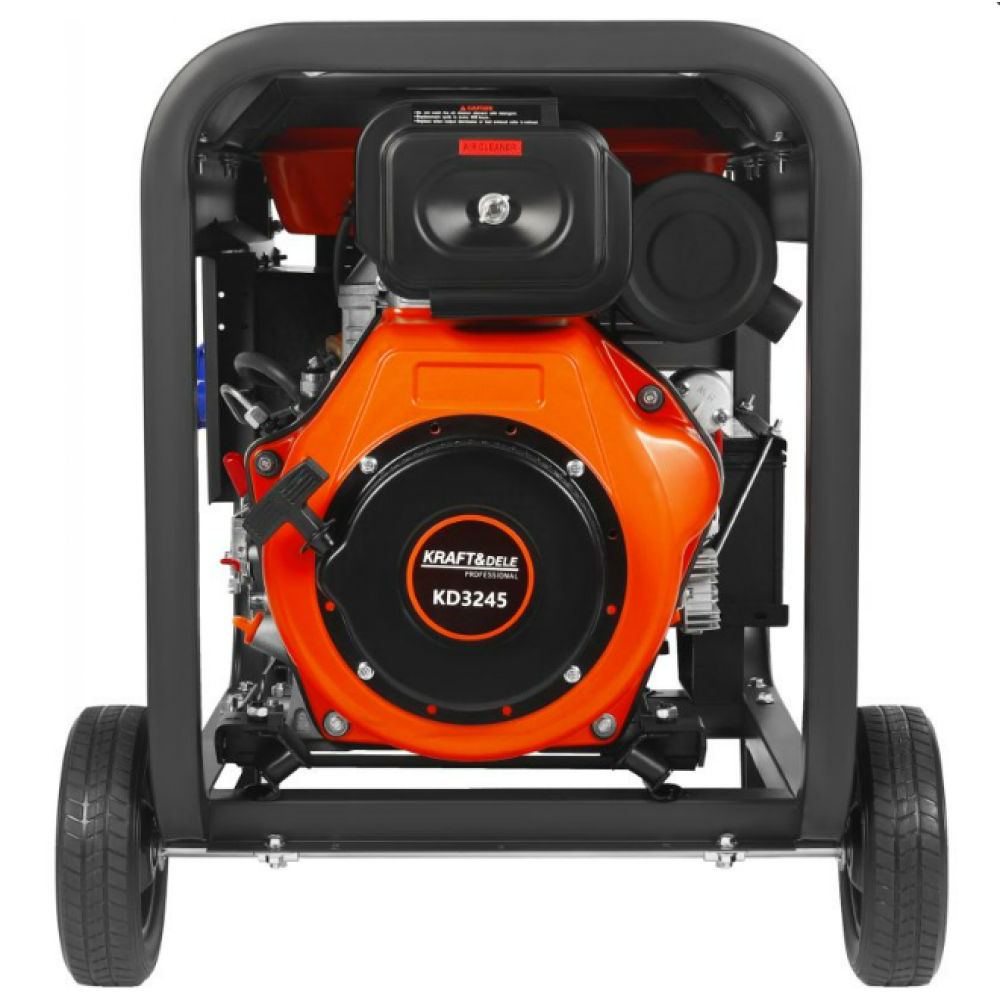 KD3245 modelis piedāvā 220 V, 220 V 32 A un 400 V kontaktligzdas, kā arī papildu 12 V 8,3 A savienotāju, kas nodrošina augstu pieslēgšanas elastības pakāpi. Tas ir aprīkots ar voltmetru, avārijas apturēšanas slēdzi un elektrisko starteri. Dzinēja stiprinājums uz montāžas kronšteiniem efektīvi samazina vibrācijas, savukārt lielie transportēšanas riteņi un izvelkamie rokturi ievērojami atvieglo ierīces pārvietošanu. Visa iekārta ir ievietota izturīgā tērauda rāmī, kas aizsargā stiprinājumus darbības un transportēšanas laikā.