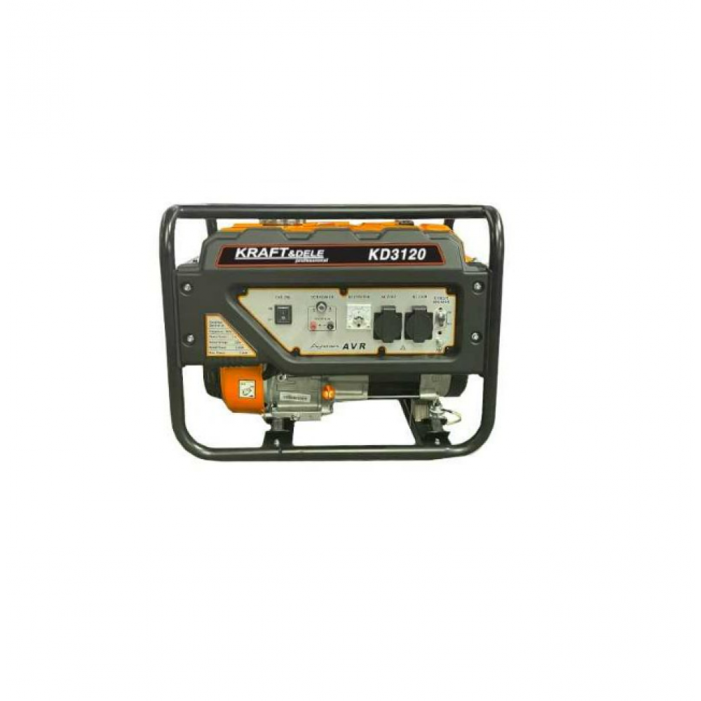 Переносной однофазный генератор KD3120 производства Kraft&Dele предназначен для выработки электроэнергии напряжением 220–230 В переменного тока с помощью четырёхтактного двигателя внутреннего сгорания с верхним расположением клапанов (OHV).